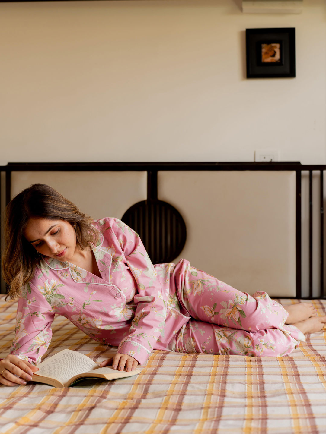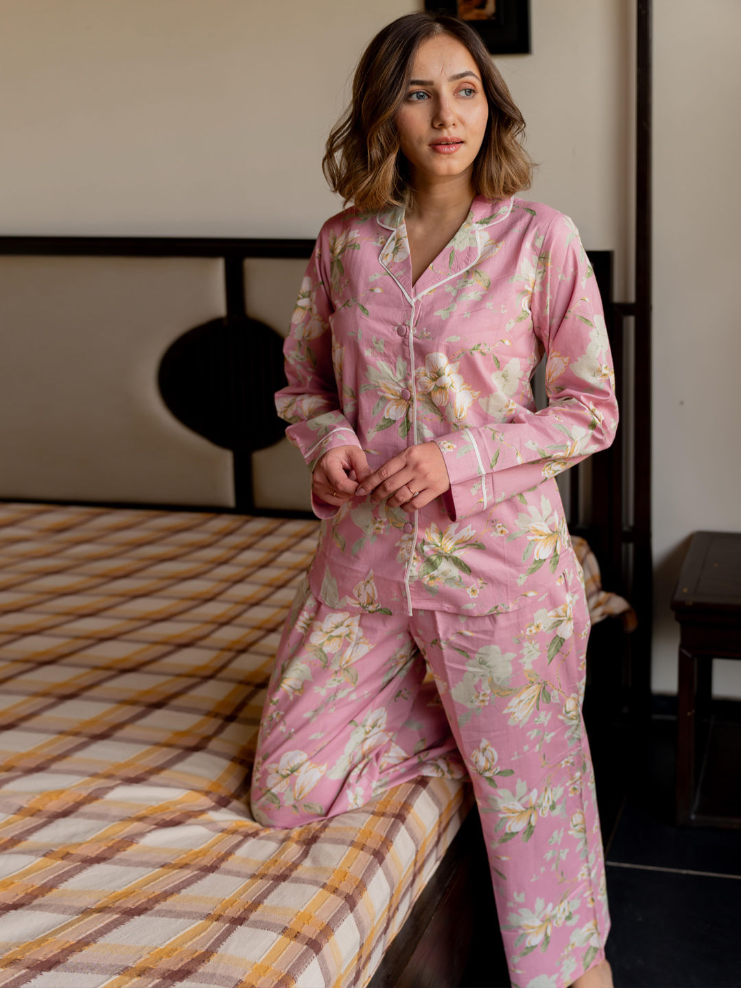 Pink and Majenta color Co-ords Set in Cotton fabric with Floral, Printed work