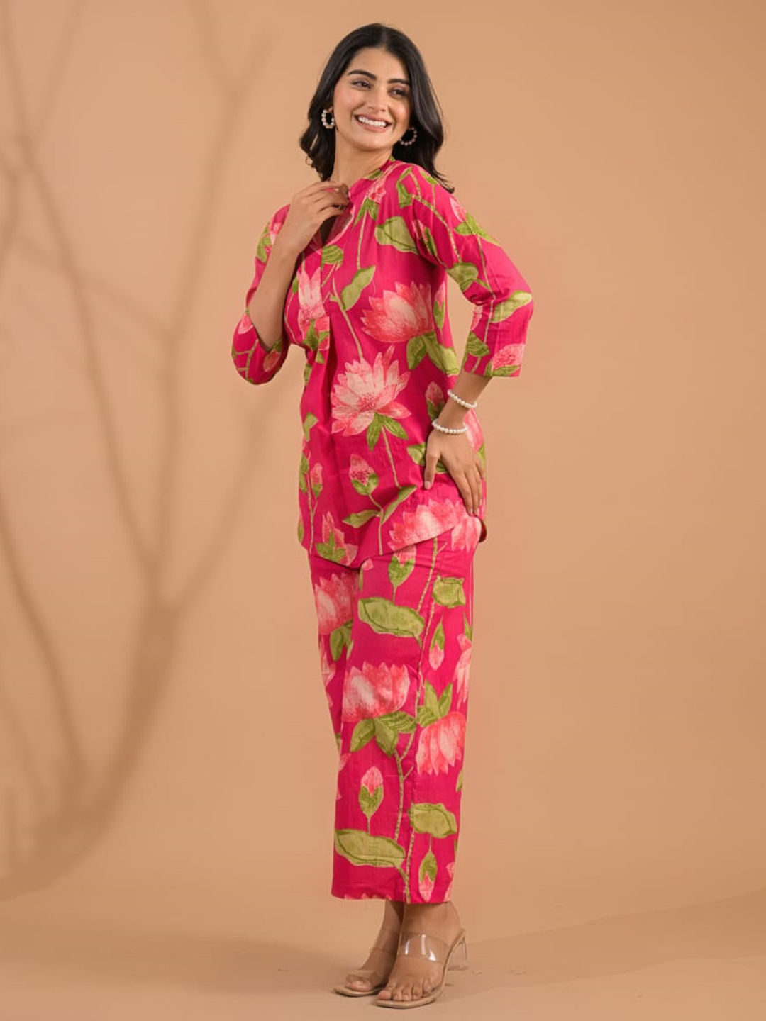 Pink and Majenta color Co-ords Set in Cotton fabric with Floral, Printed work