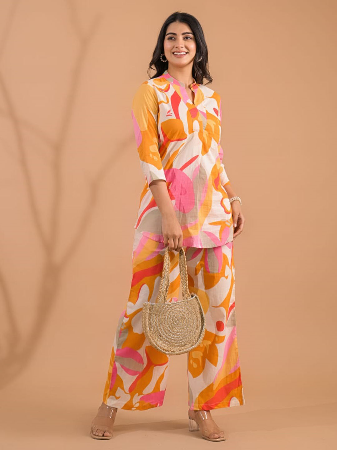 Cotton Summer Co-ords Set in Pink and Majenta with Printed work
