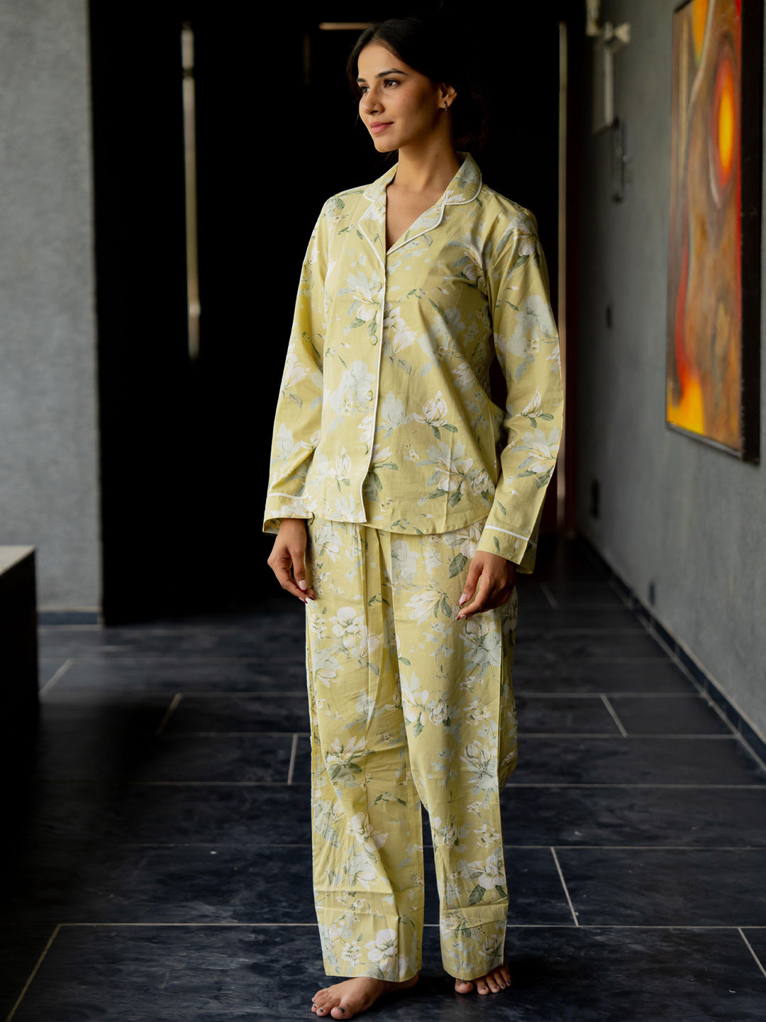 Cotton Summer Co-ords Set in Yellow with Floral work