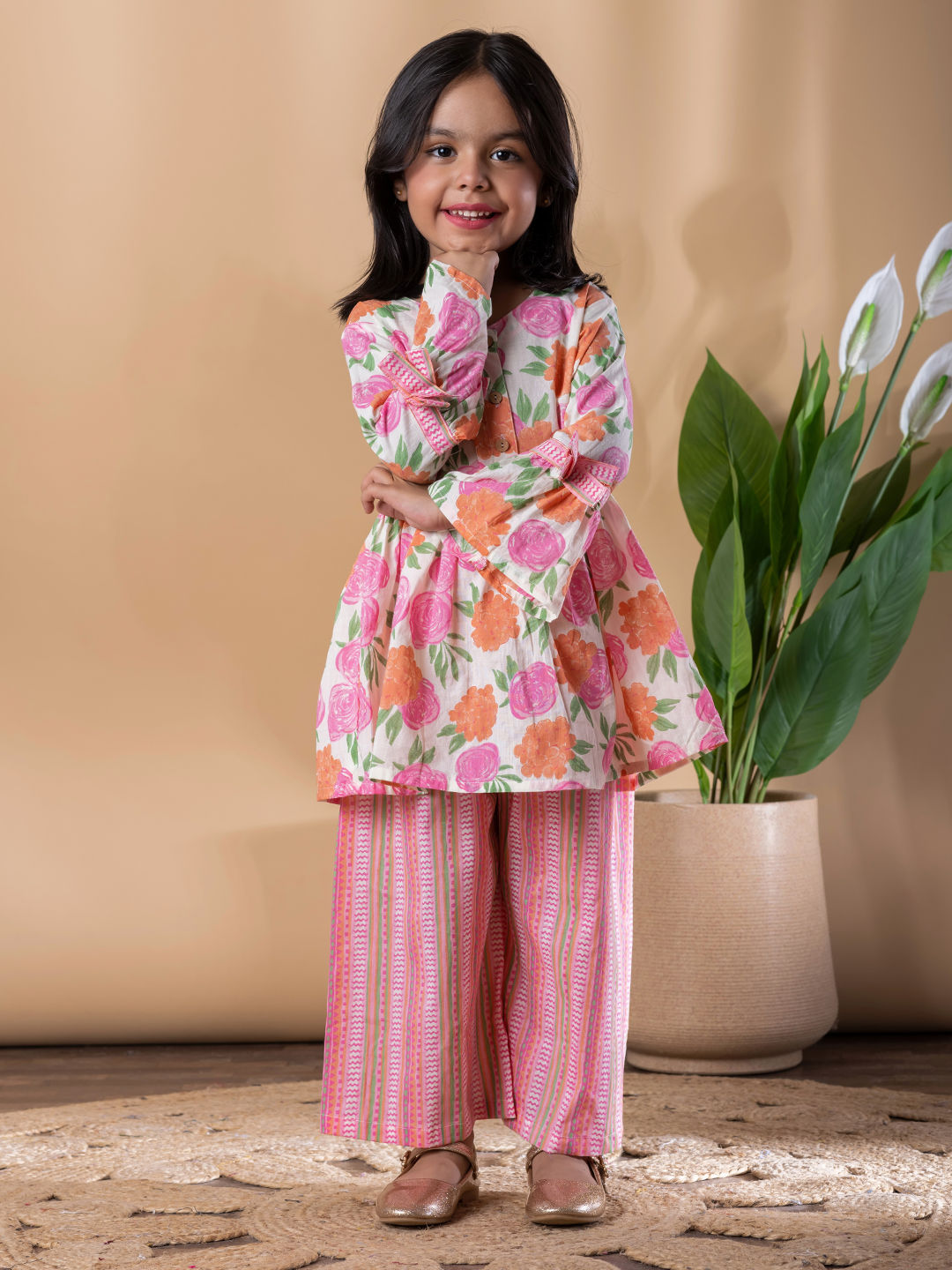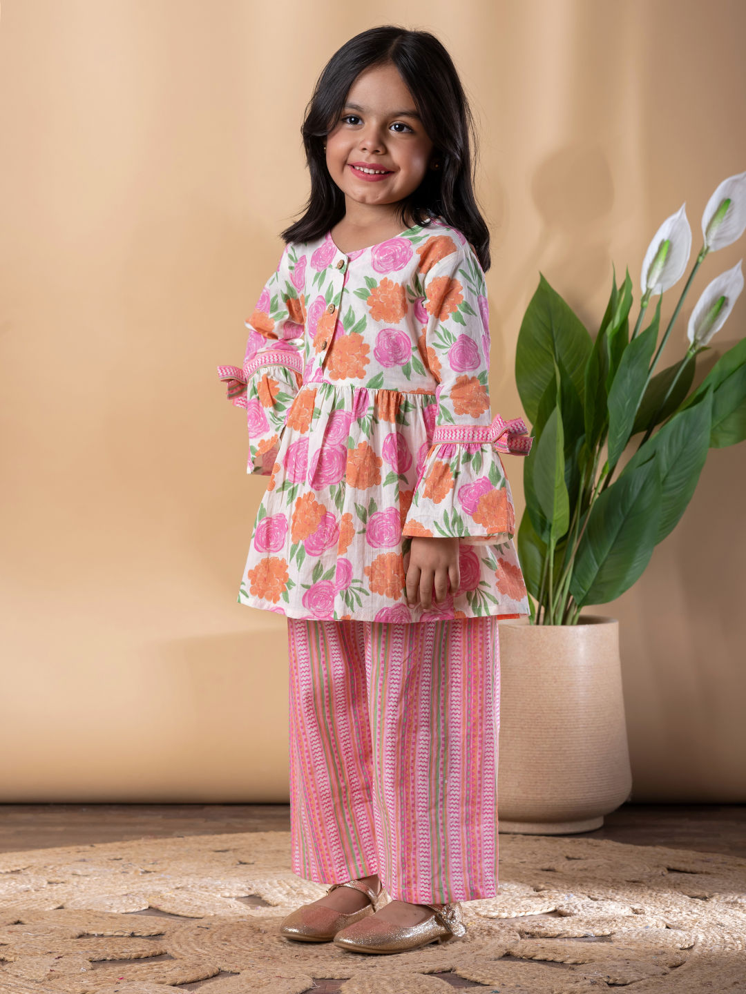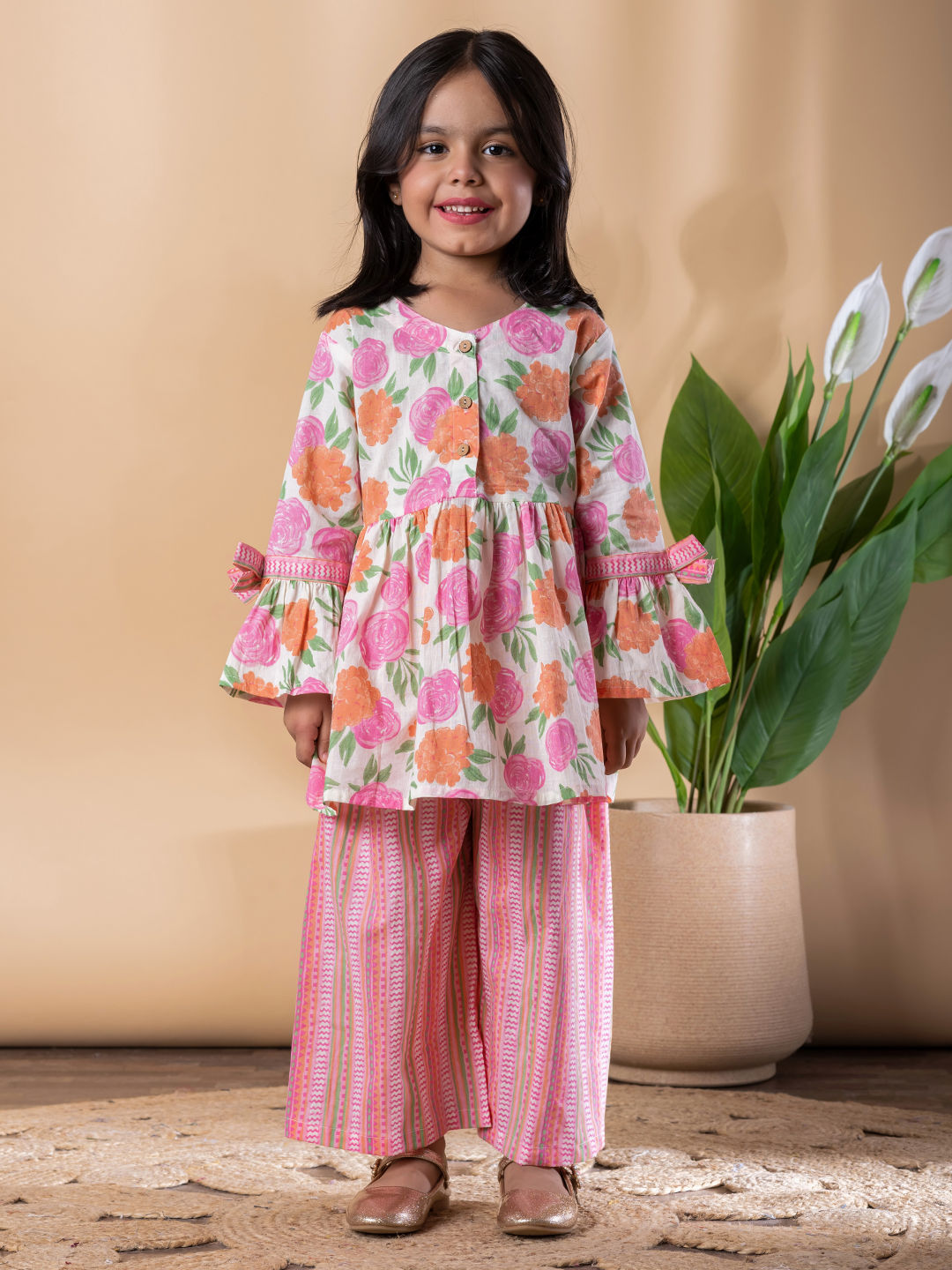 Pink and Majenta, White and Off White color Girls Top with Bottom in Cotton fabric with Floral, Printed work