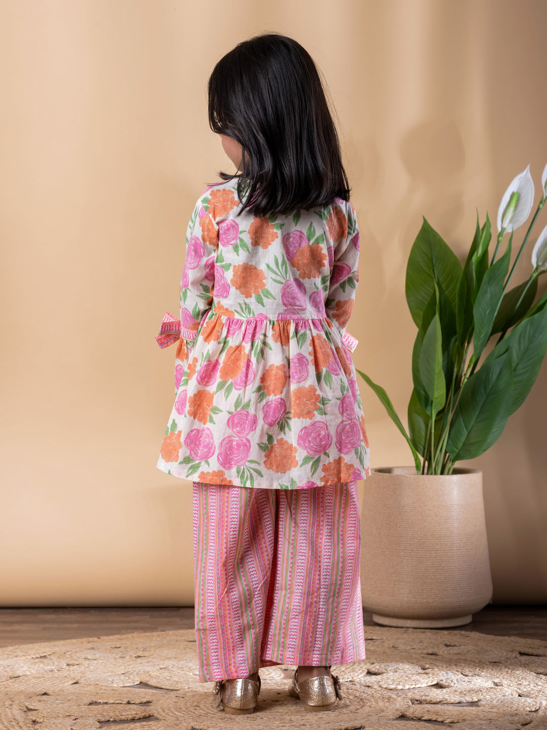 Cotton Festive Girls Top with Bottom in Pink and Majenta with Floral work