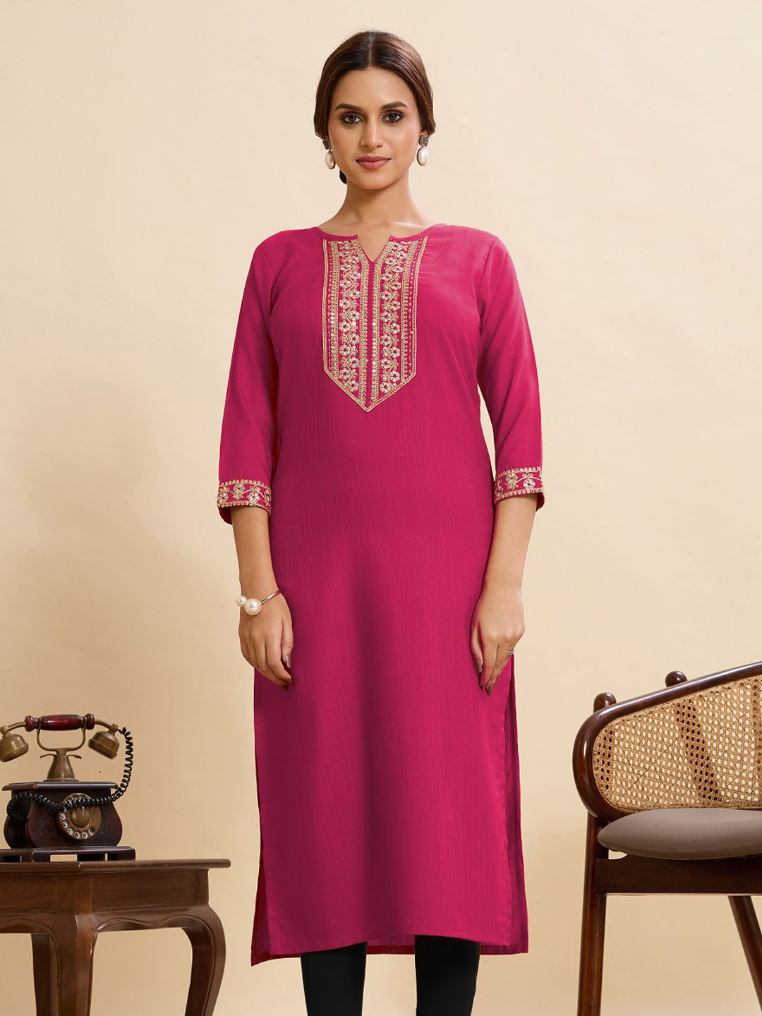 Pink and Majenta color Kurti in Cotton fabric with Embroidered, Sequence work