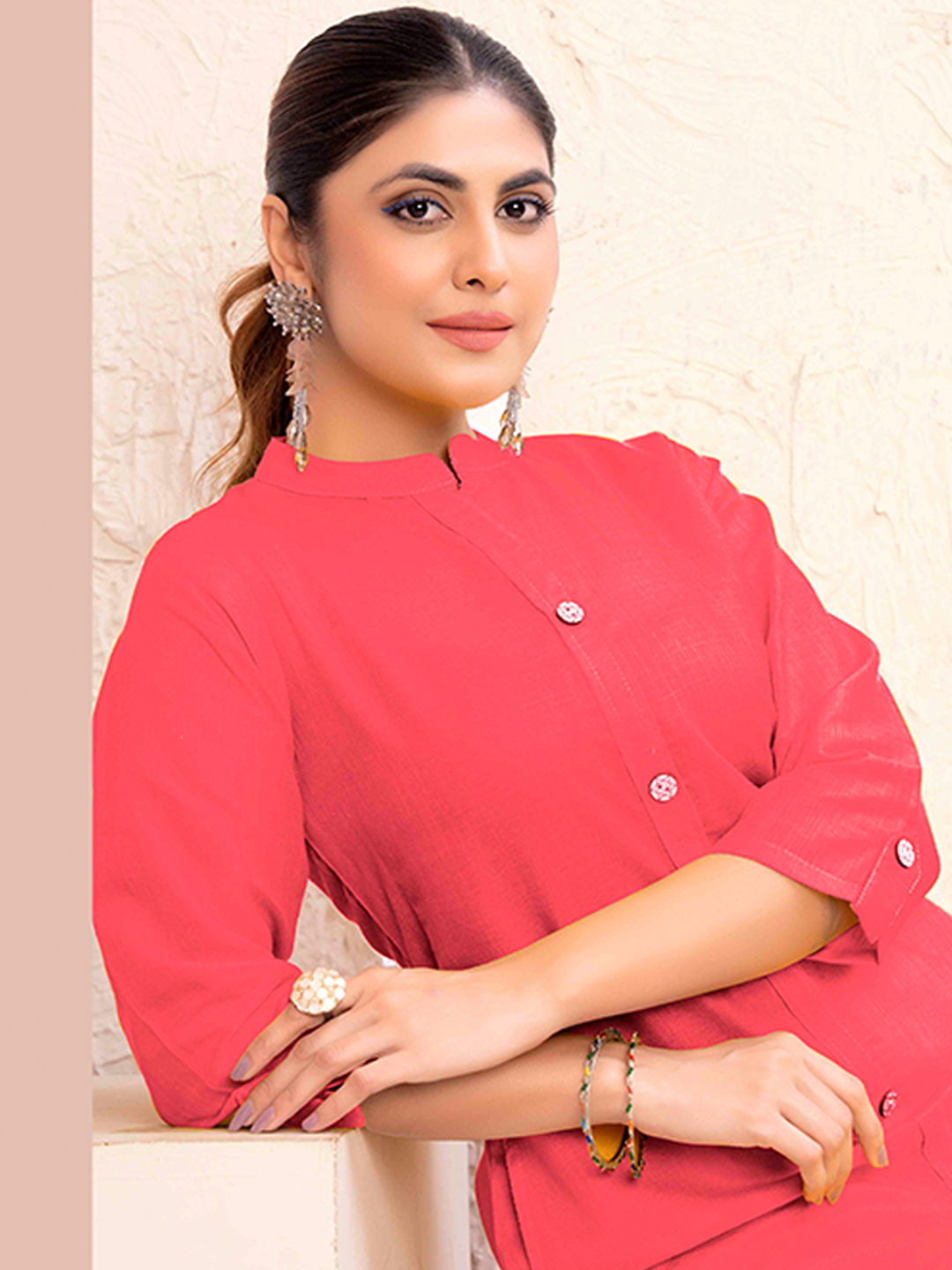 Cotton Summer Kurti in Pink and Majenta with Thread work