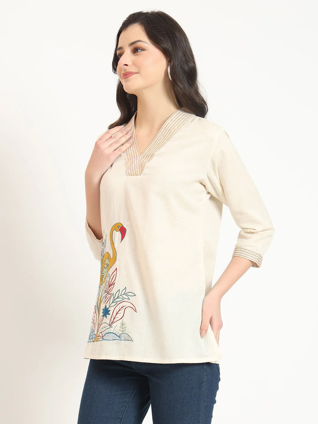 White and Off White color Kurti in Cotton fabric with Embroidered work