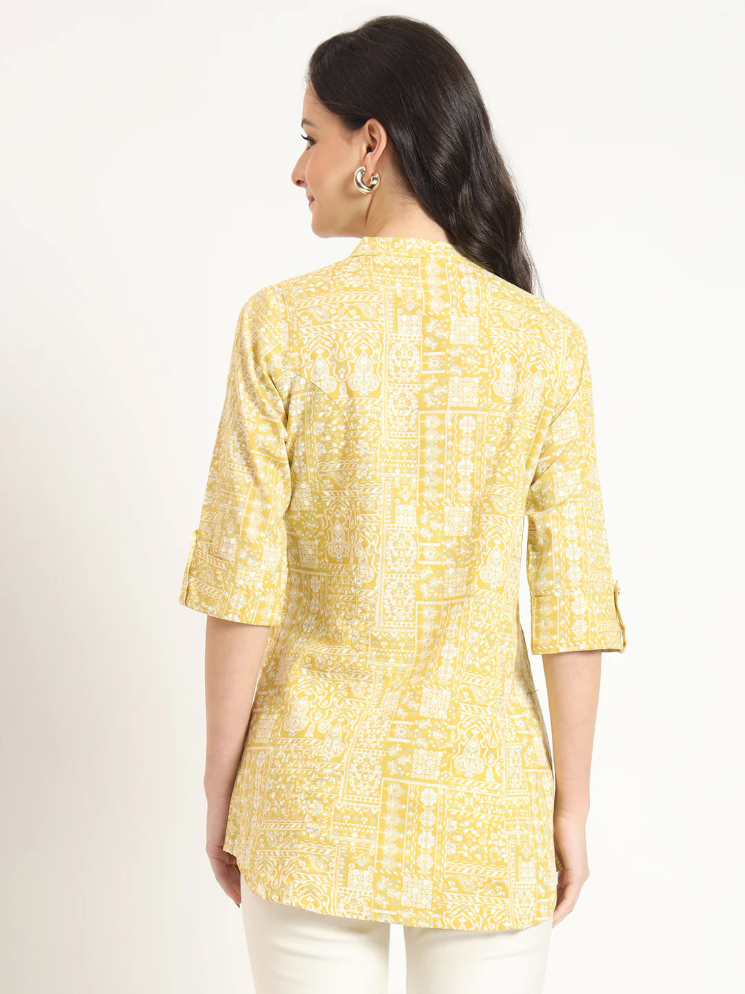 Yellow color Kurti in Cotton fabric with Printed work
