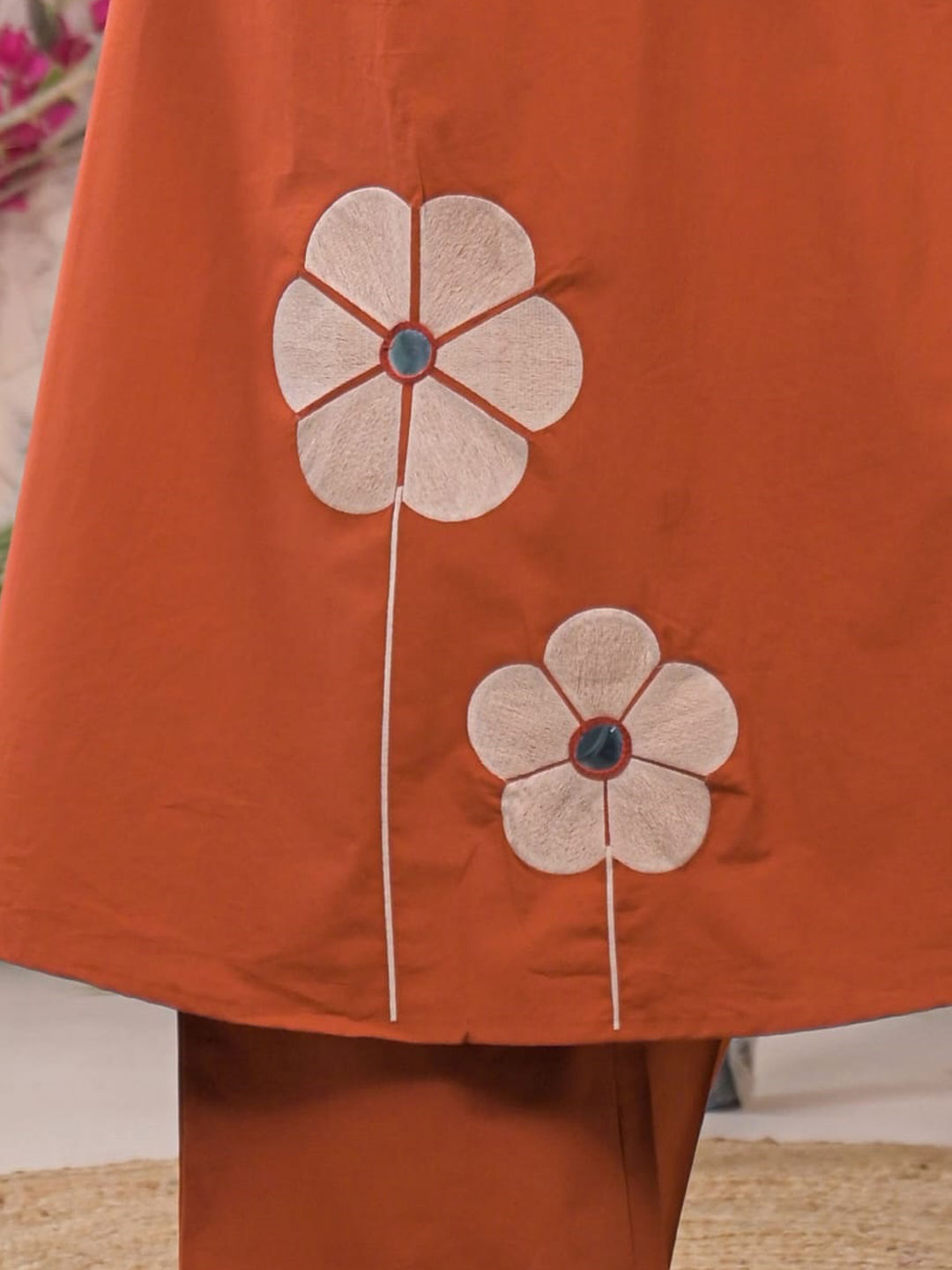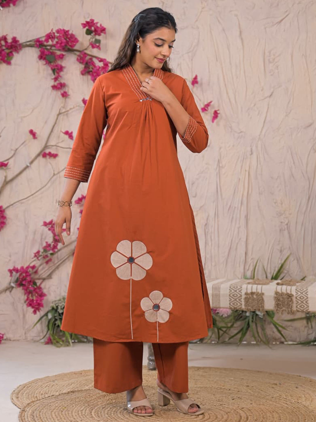 Beige and Brown color Salwar Kameez in Cotton fabric with Embroidered, Mirror work