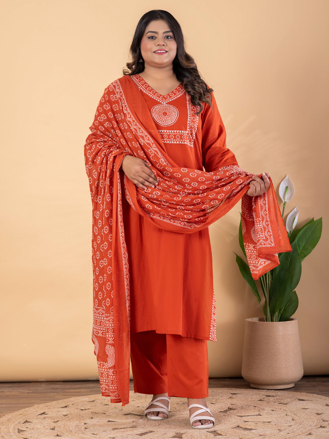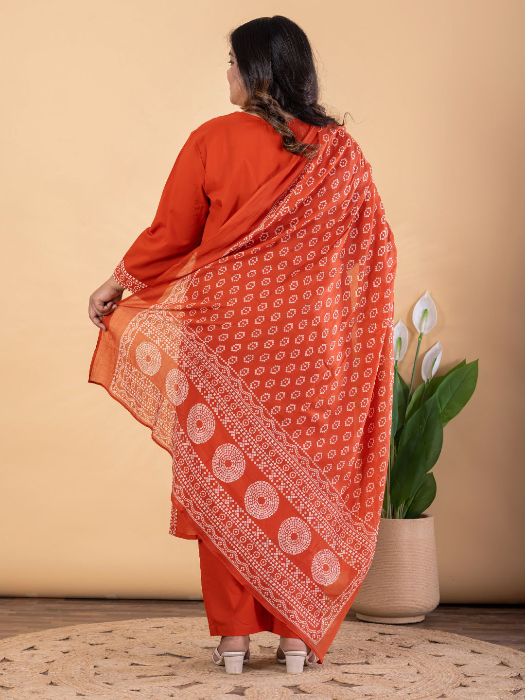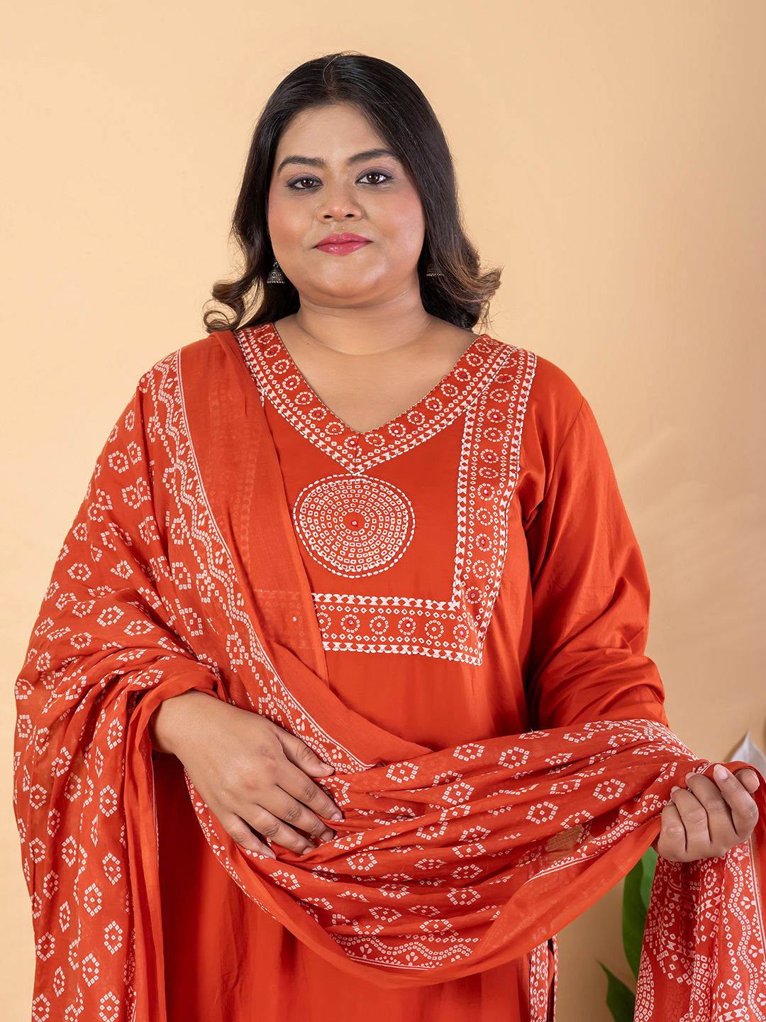 Beige and Brown color Salwar Kameez in Cotton fabric with Bandhej, Printed work