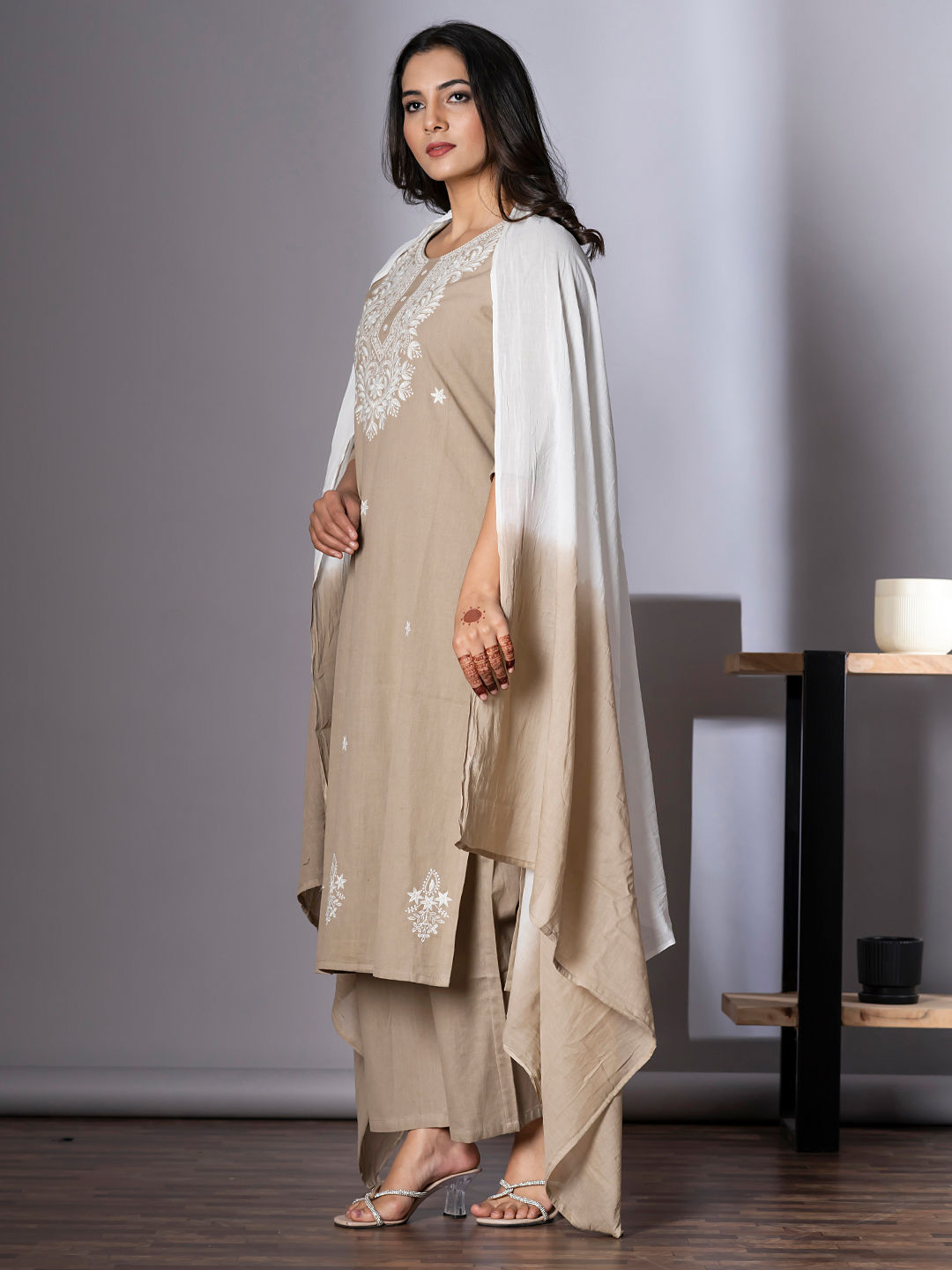 in Beige and Brown with Thread work