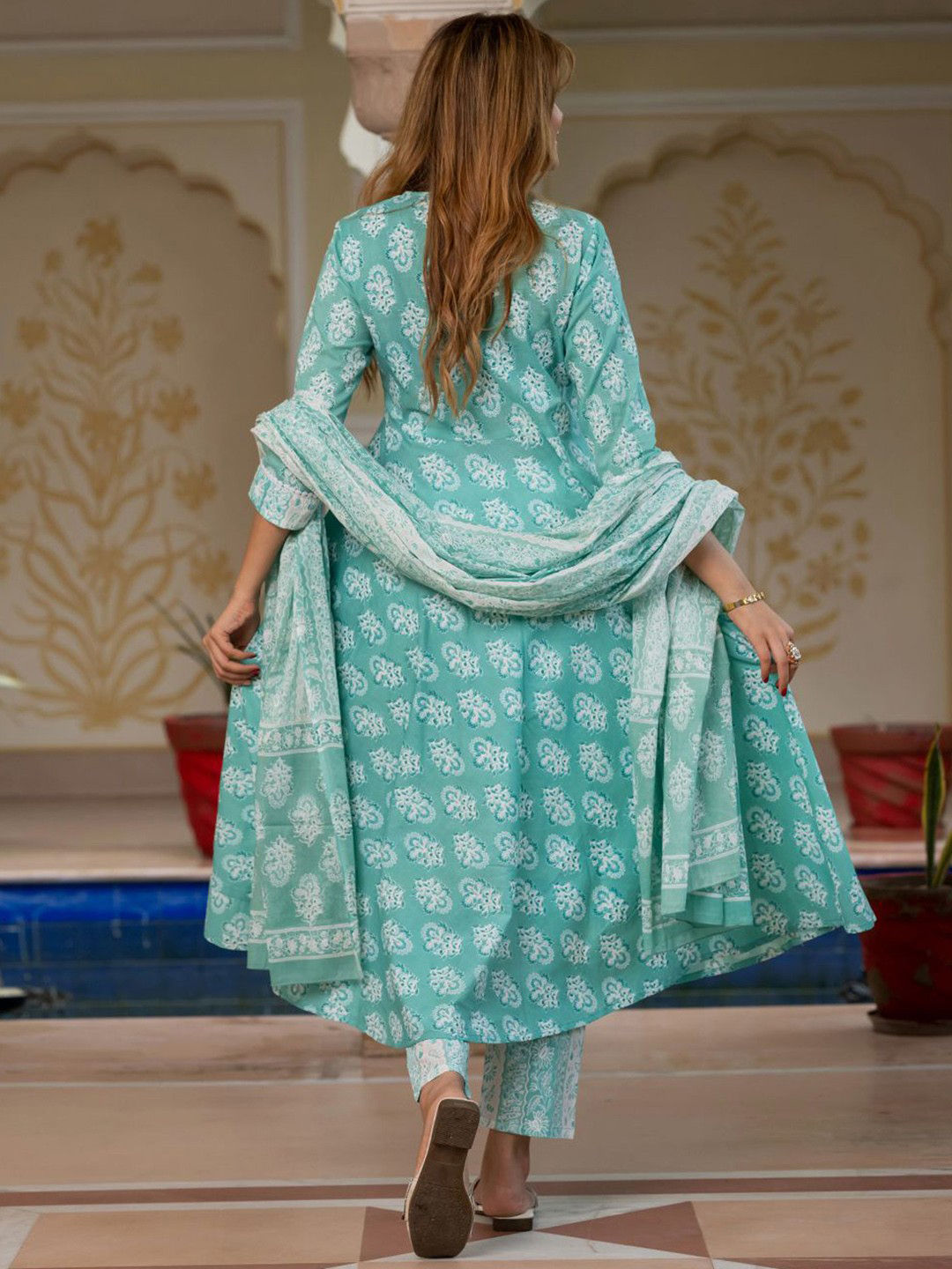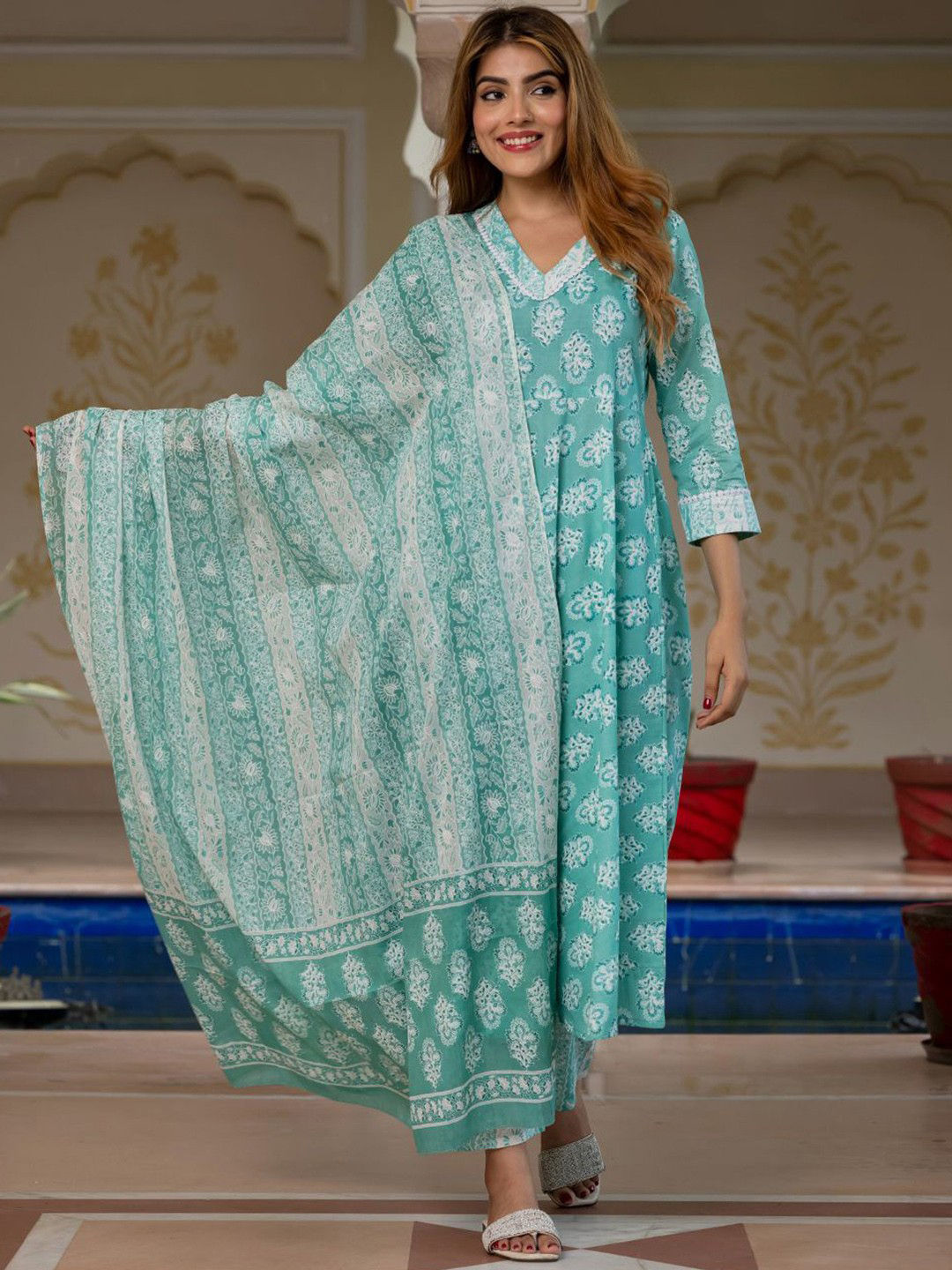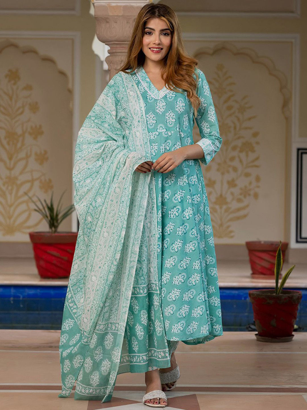 Blue color Salwar Kameez in Cotton fabric with Floral, Printed work
