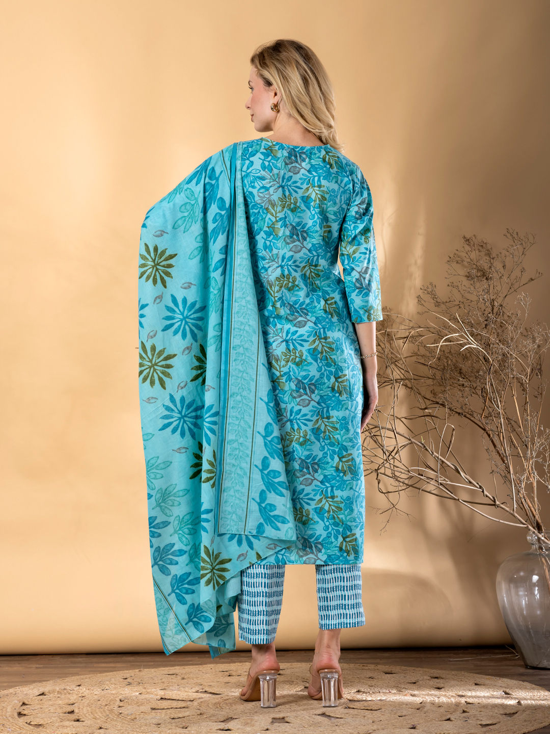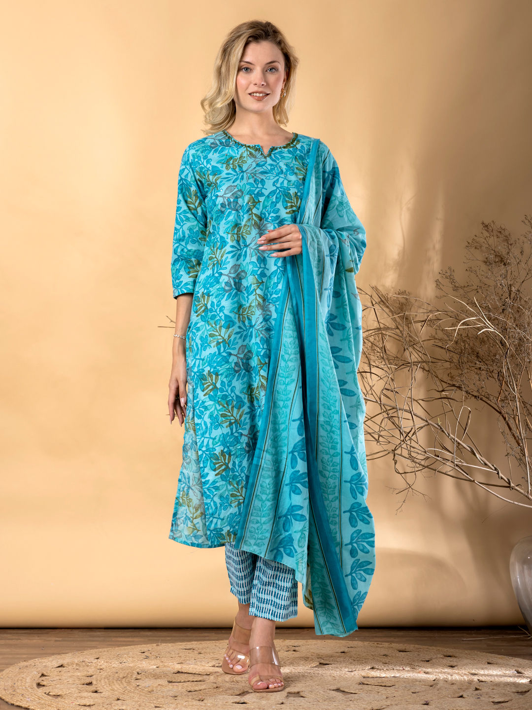 Cotton Festive Salwar Kameez in Blue with Printed work