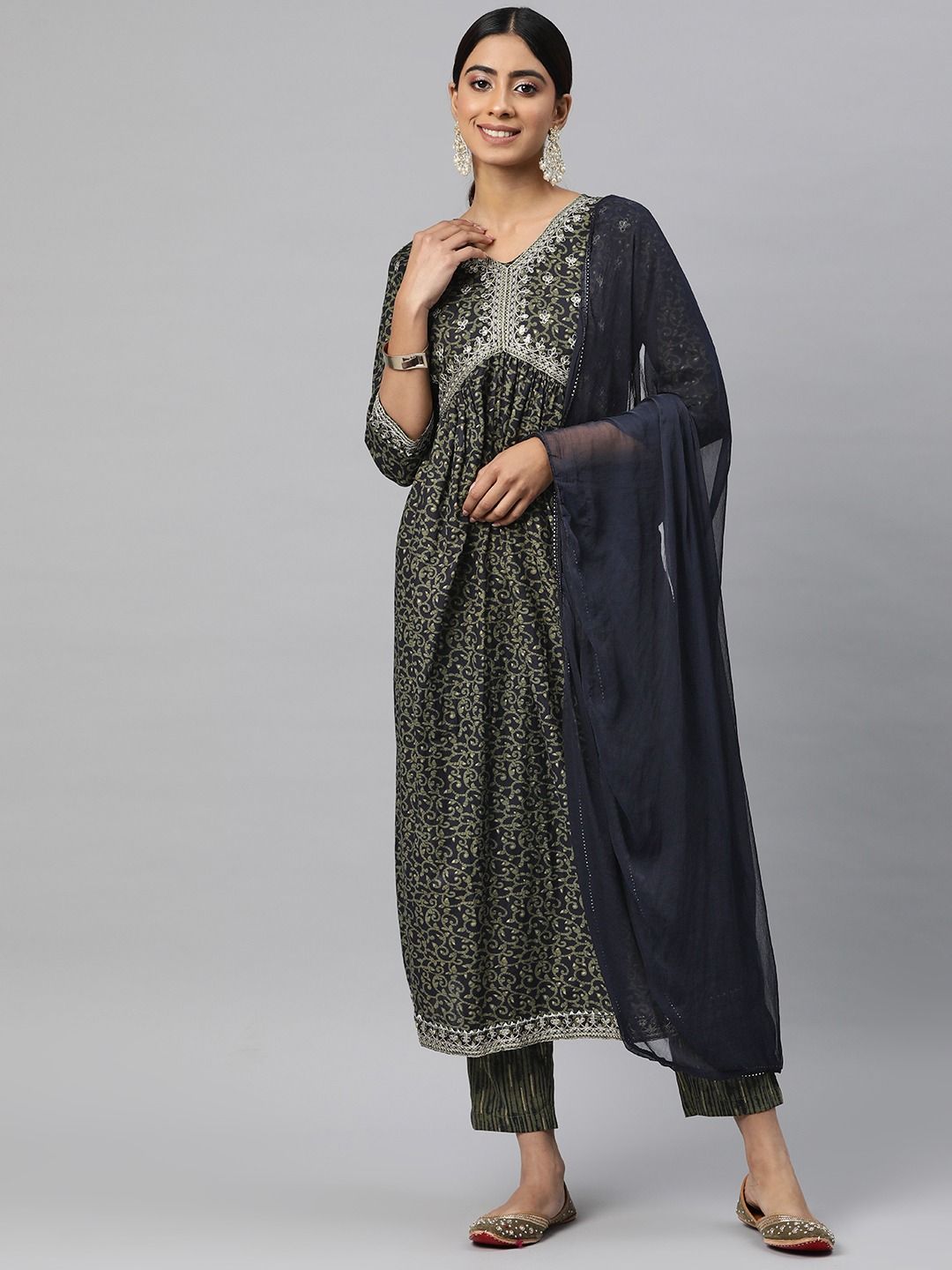 Rayon Festive Salwar Kameez in Black and Grey with Printed work