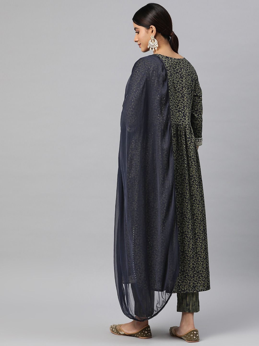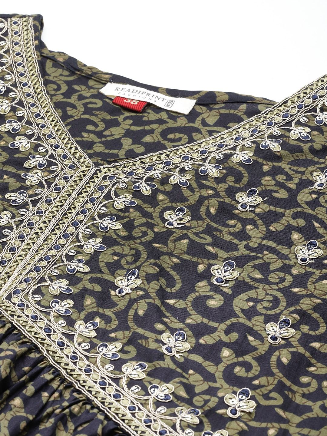 Blue color Salwar Kameez in Cotton fabric with Printed, Resham, Thread, Zari work