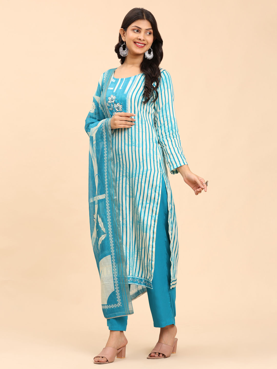 Blue color Salwar Kameez in Cotton fabric with Printed, Thread, Zardozi work