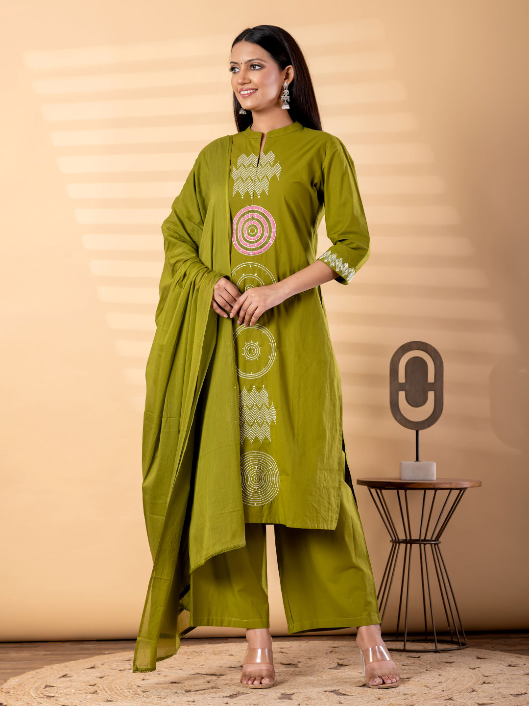 in Green with Thread work
