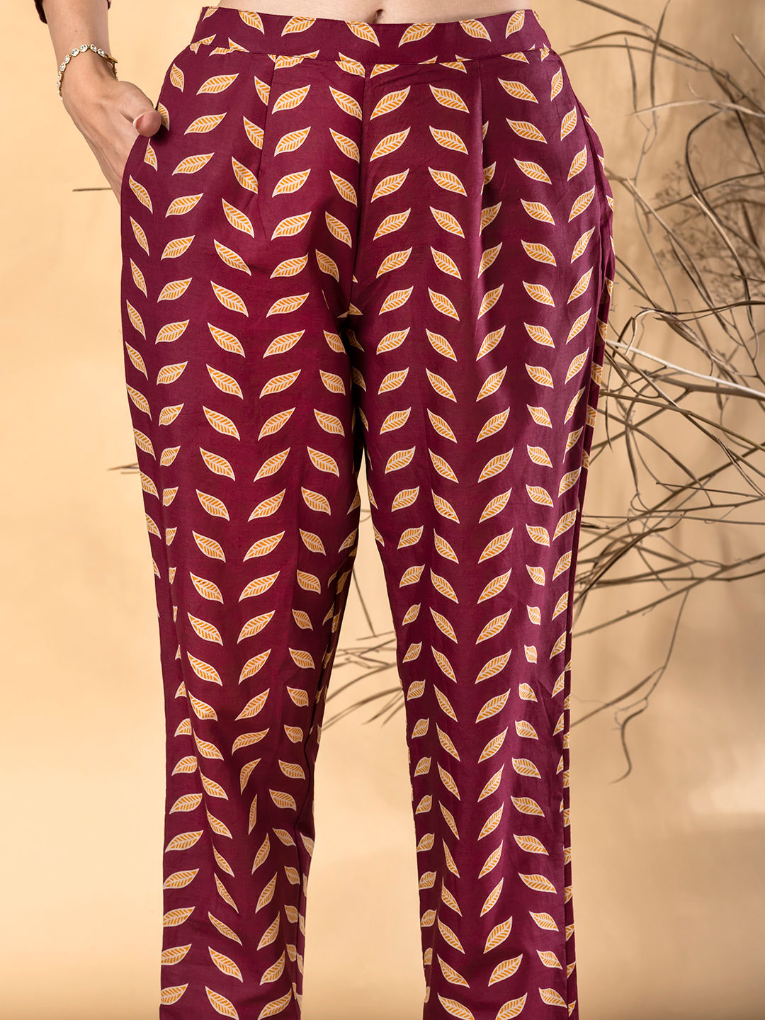 in Red and Maroon with Printed work