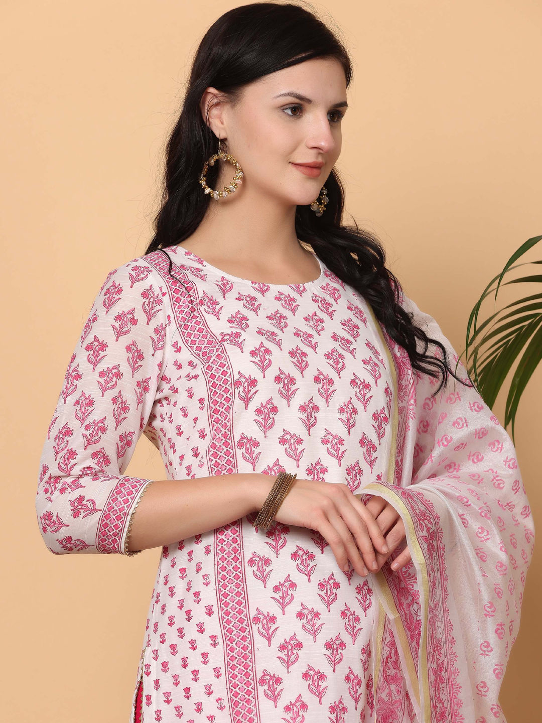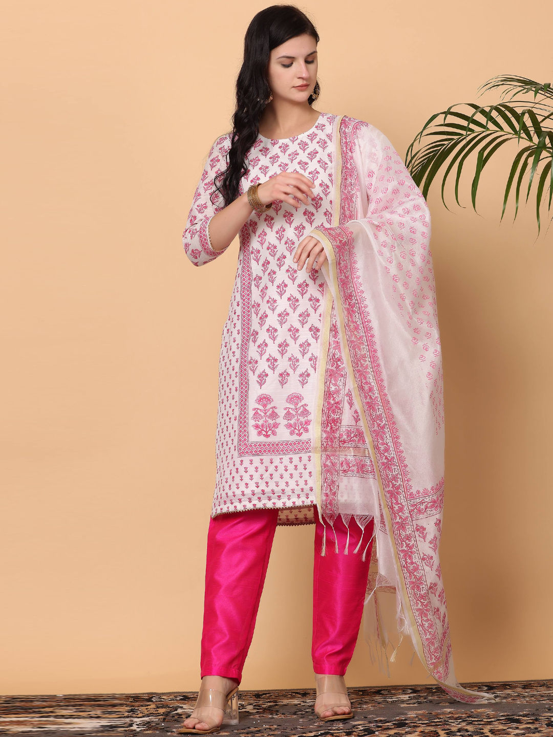 White and Off White color Salwar Kameez in Cotton fabric with Block Print work