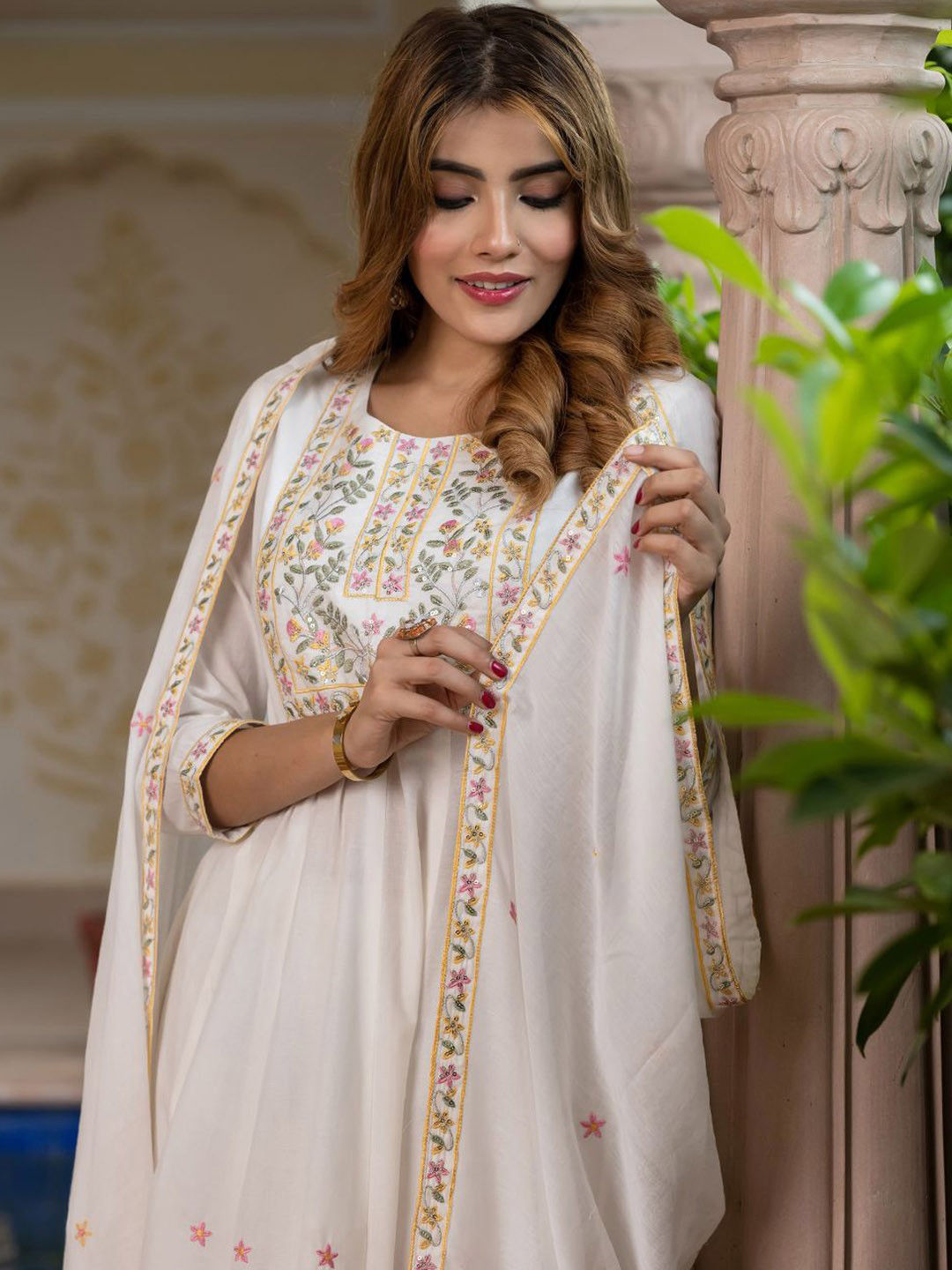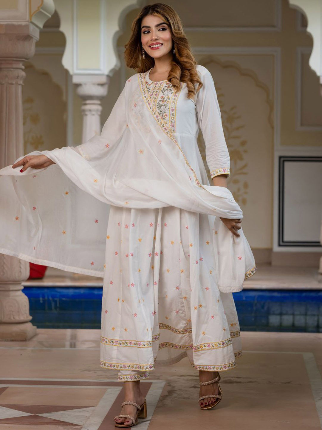 in White and Off White with Printed work
