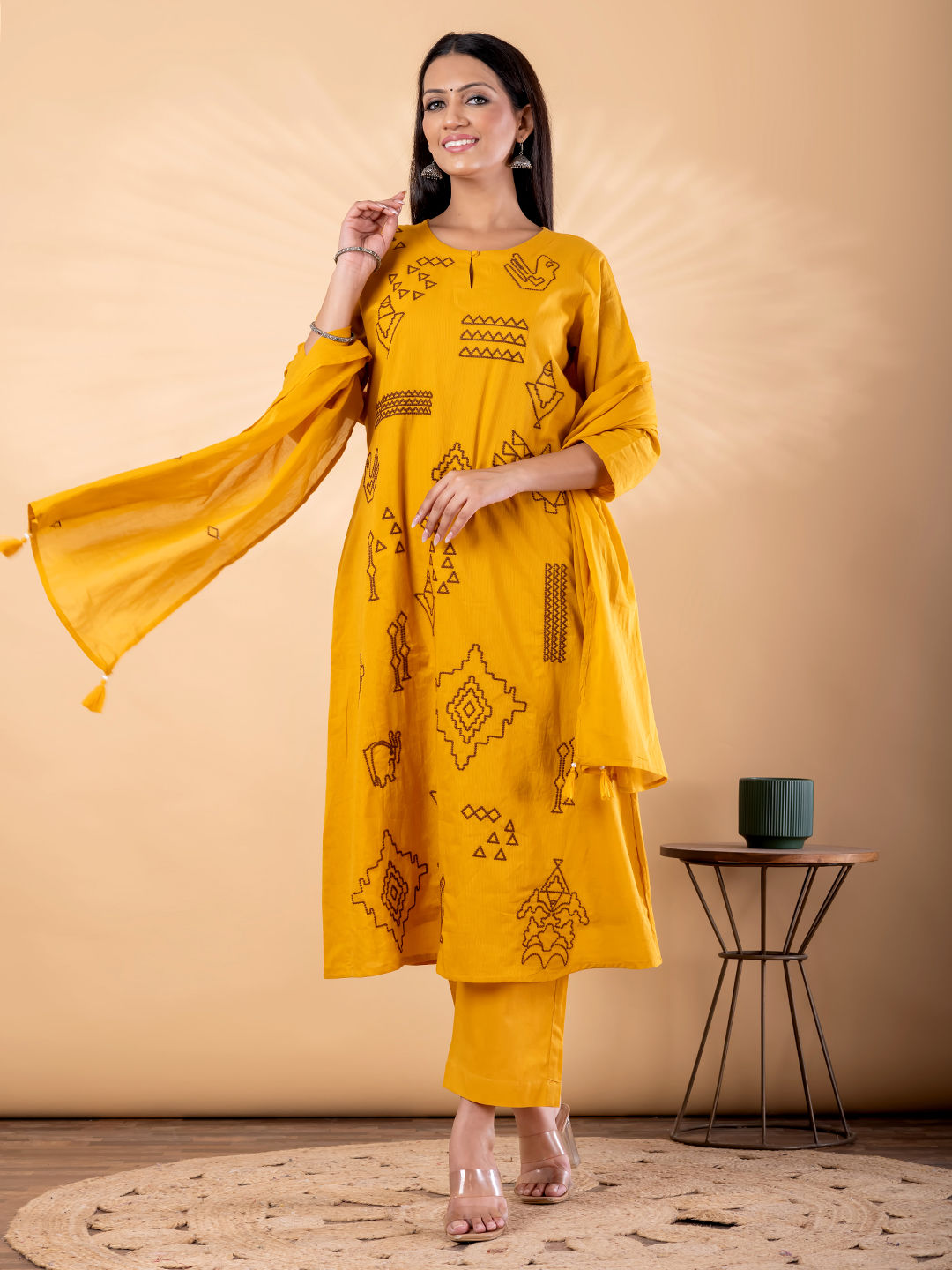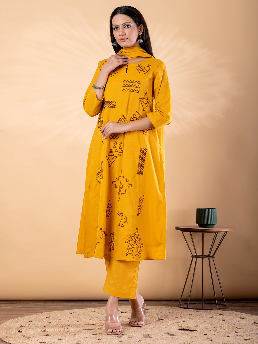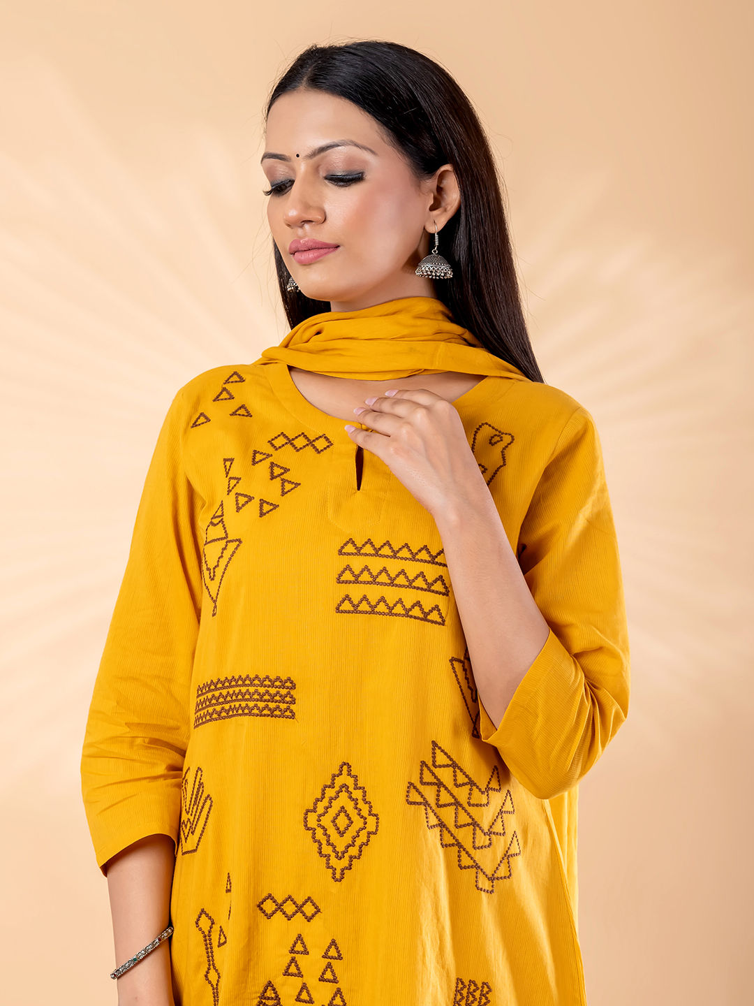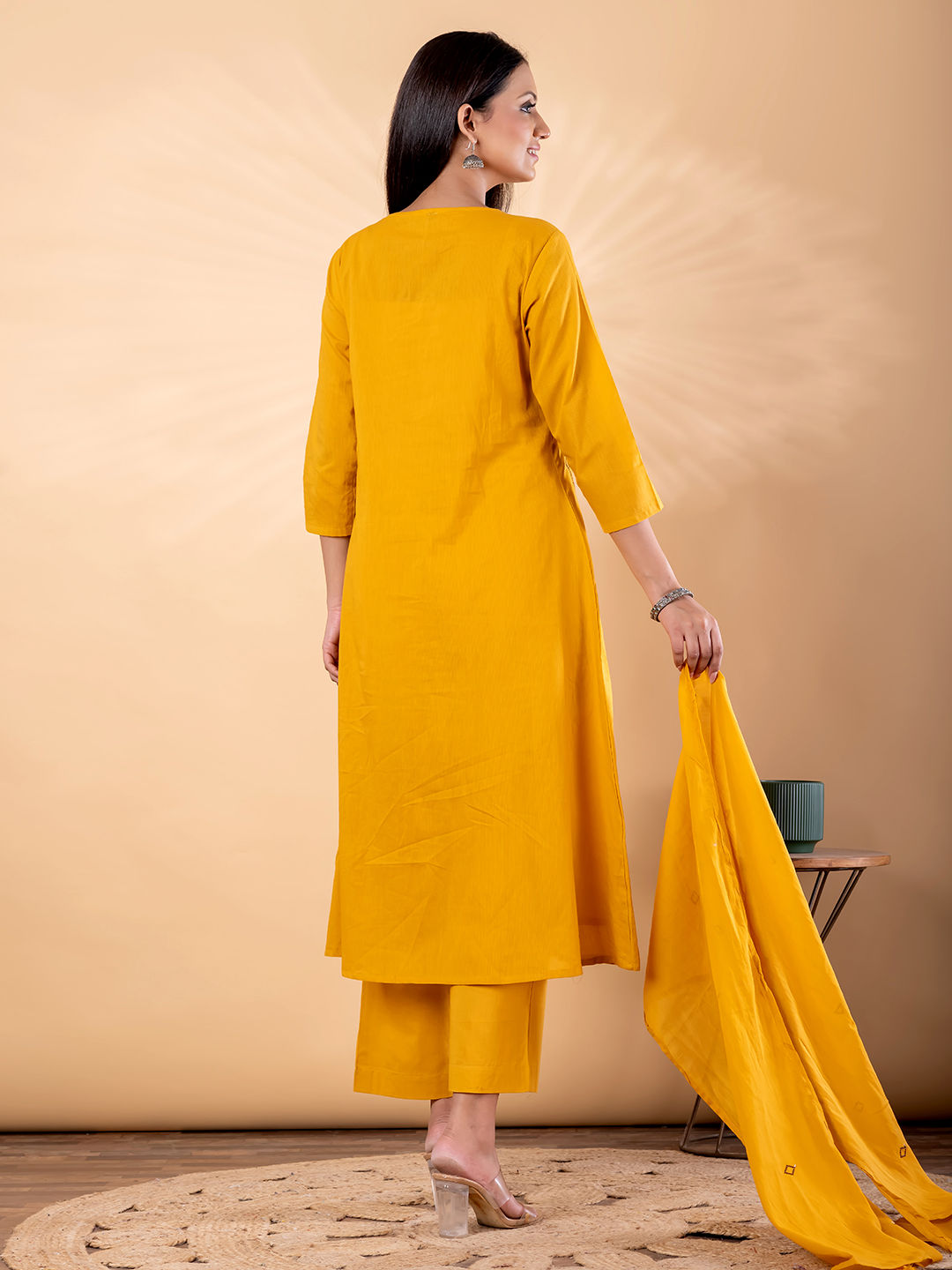 Yellow color Salwar Kameez in Cotton fabric with Embroidered, Resham, Thread work