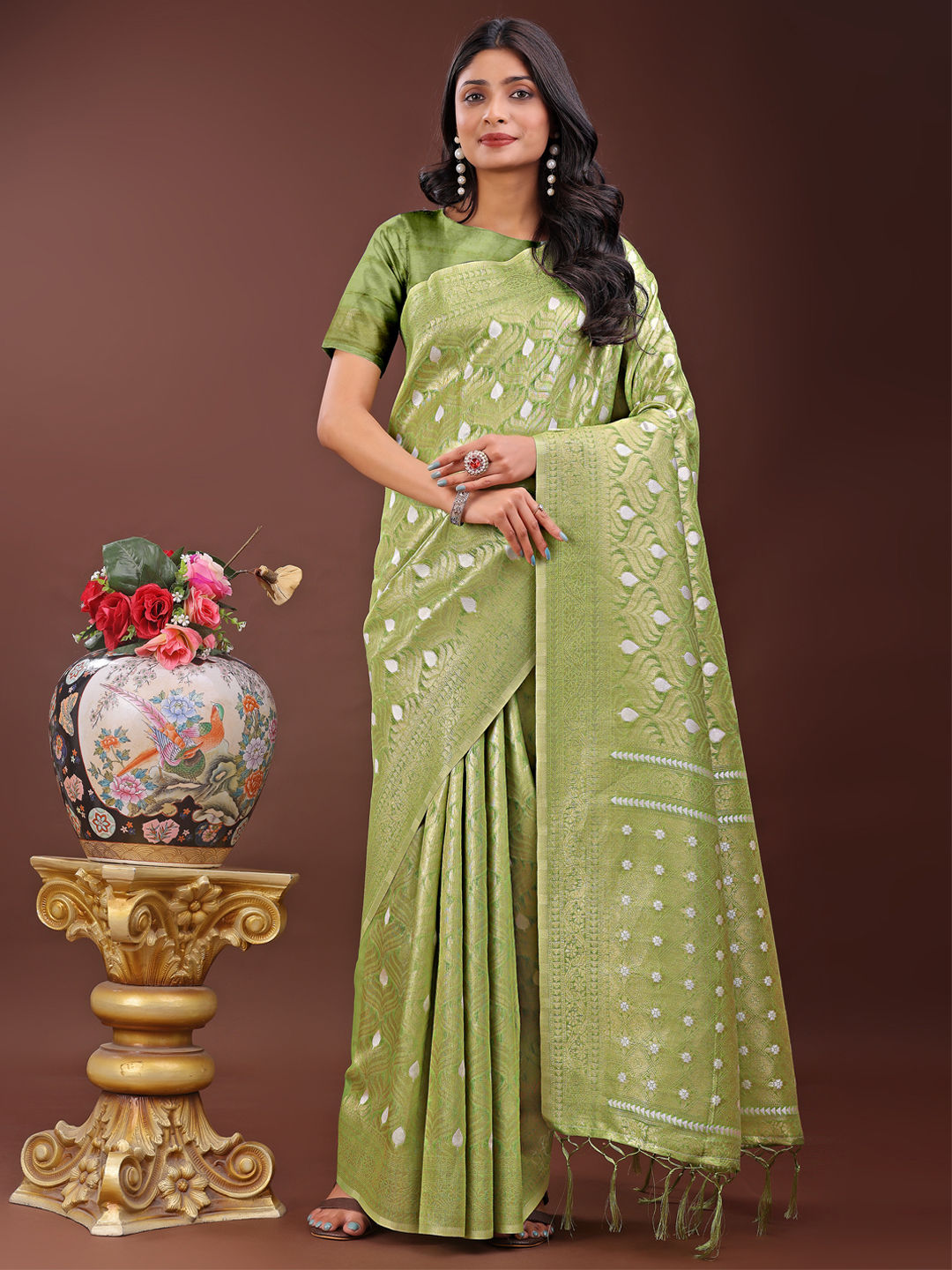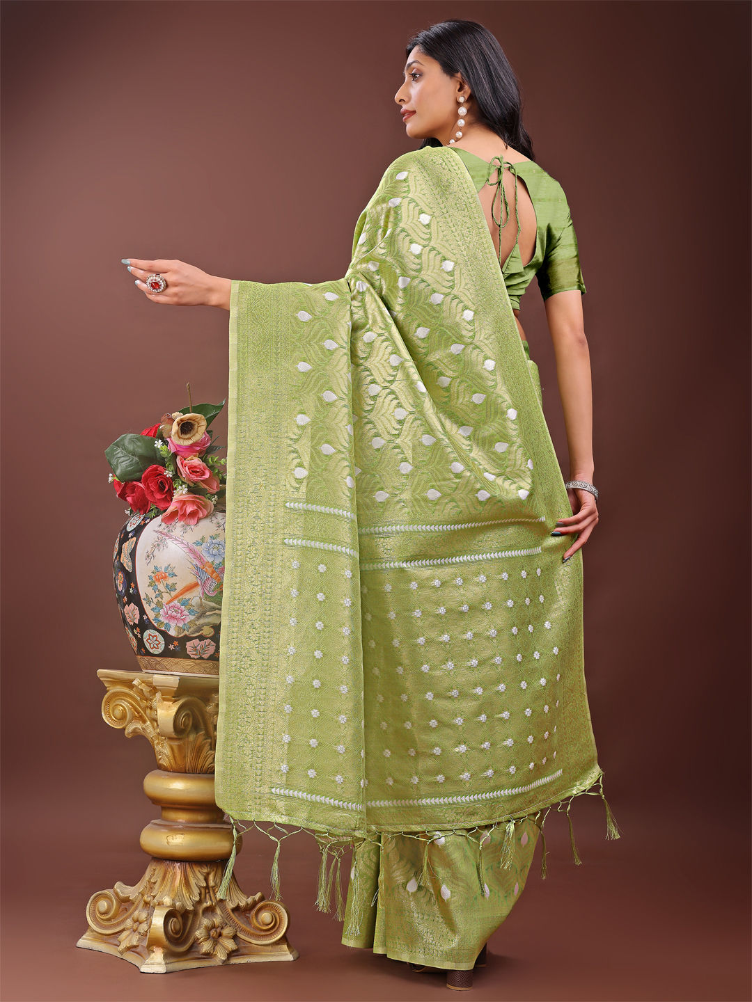 in Green with Weaving work