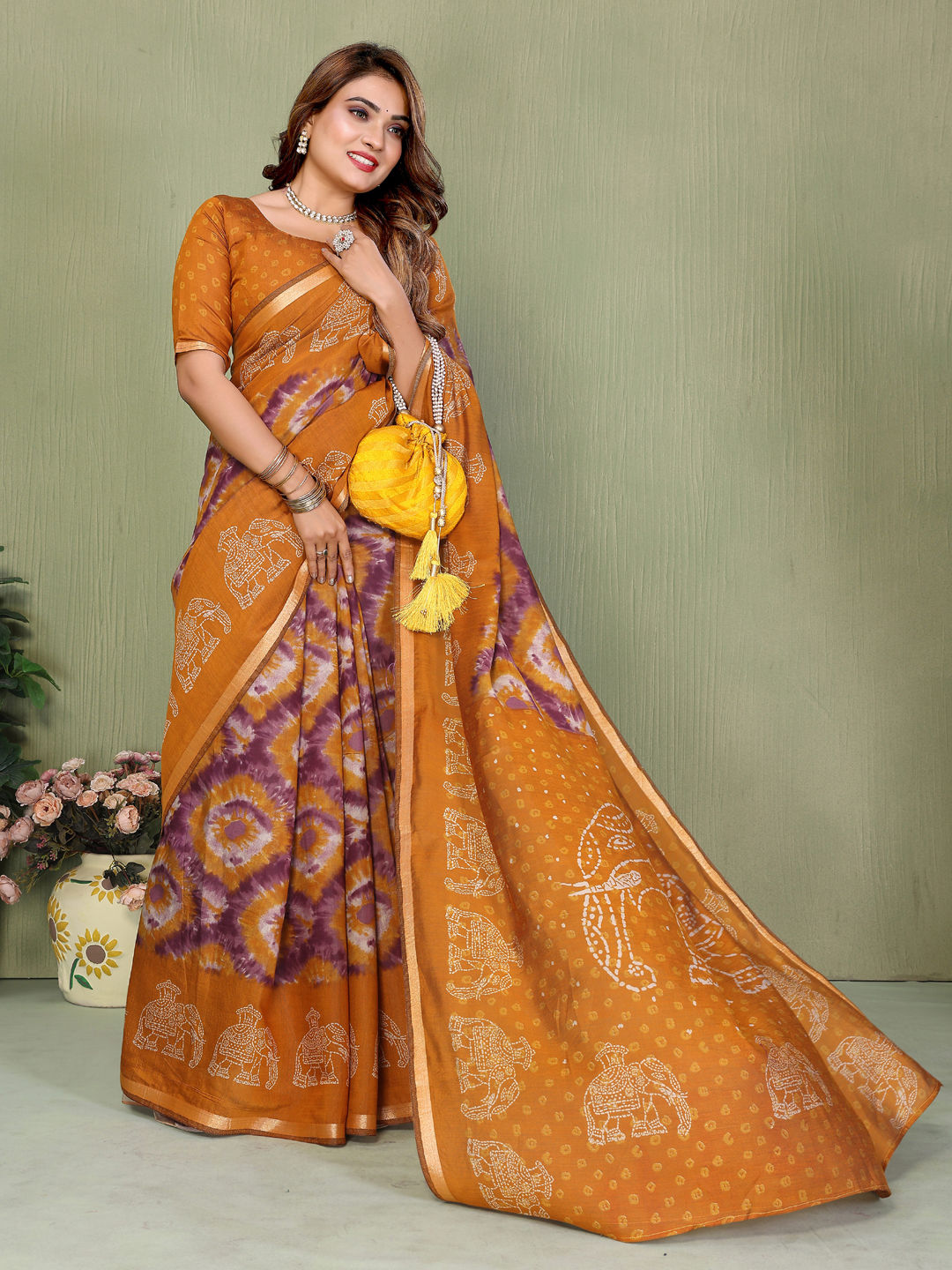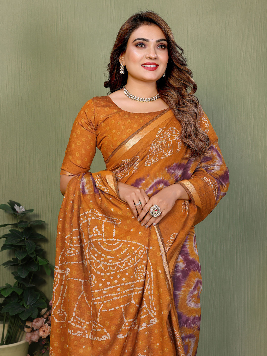 Multicolor color Saree in Cotton, Malmal fabric with Printed work
