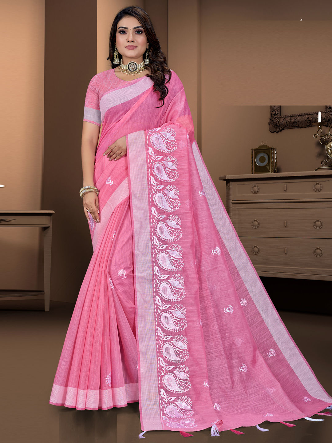 Pink and Majenta color Saree in Cotton fabric with Embroidered, Resham work