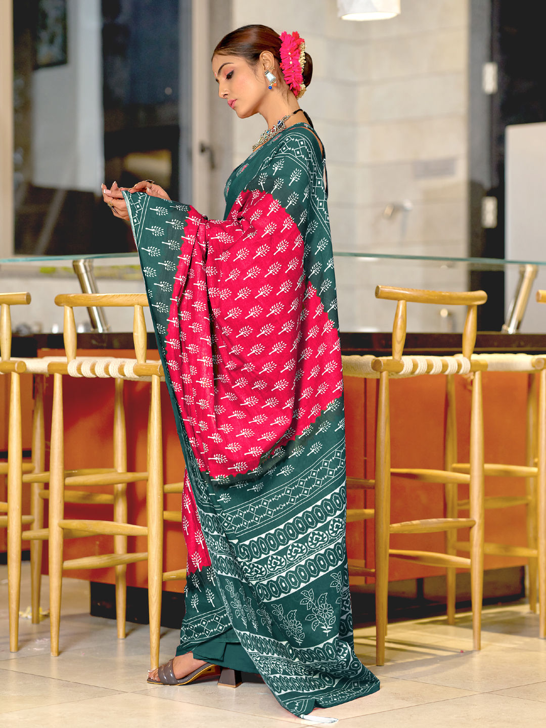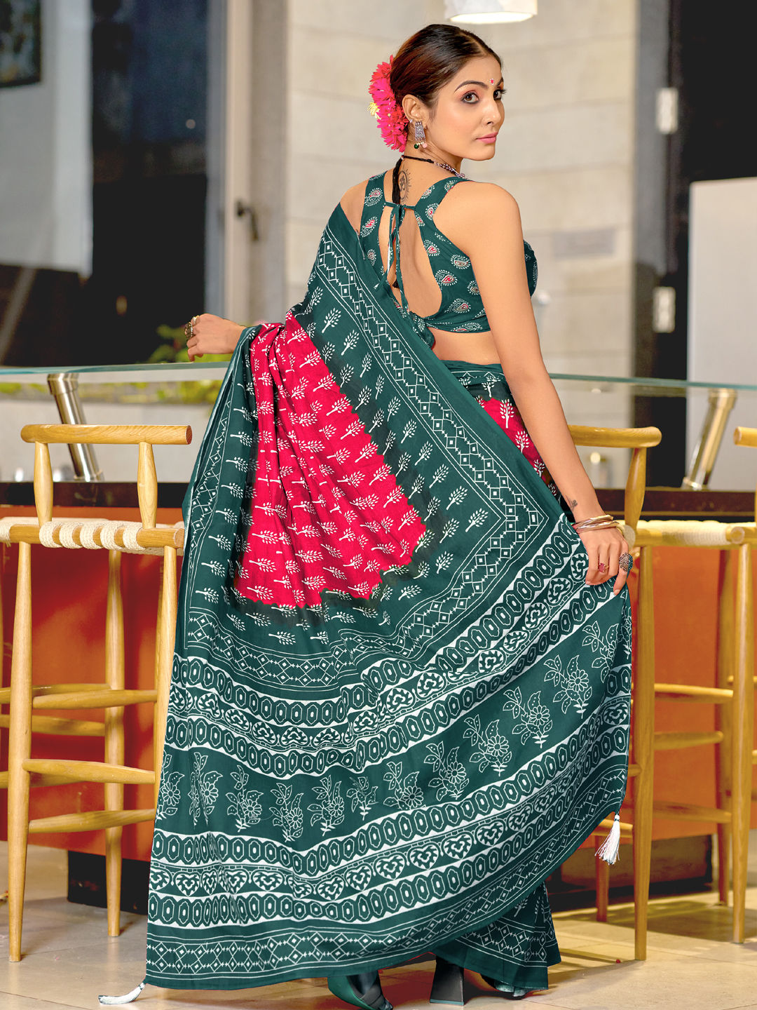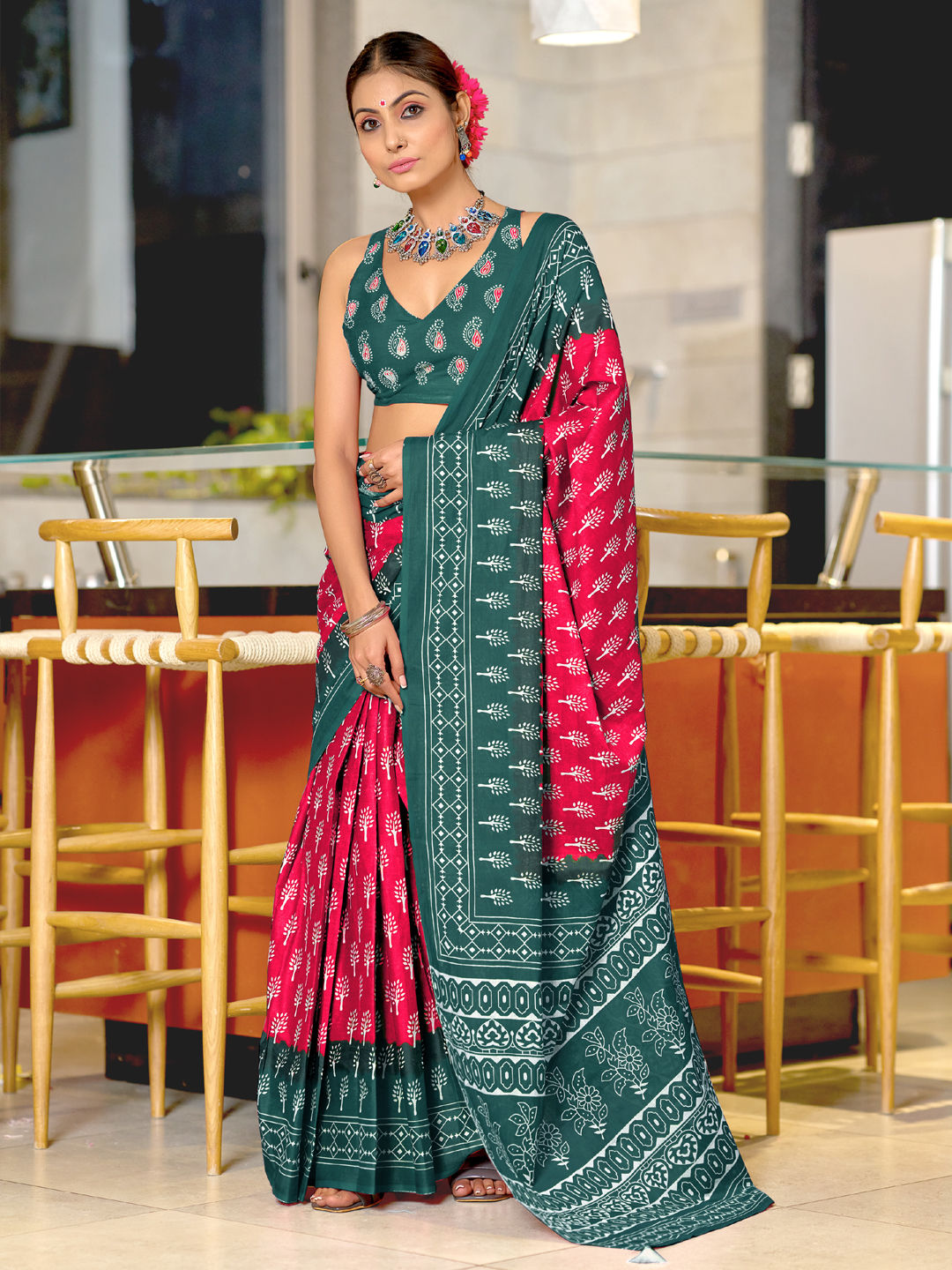 Pink and Majenta color Saree in Cotton fabric with Printed work