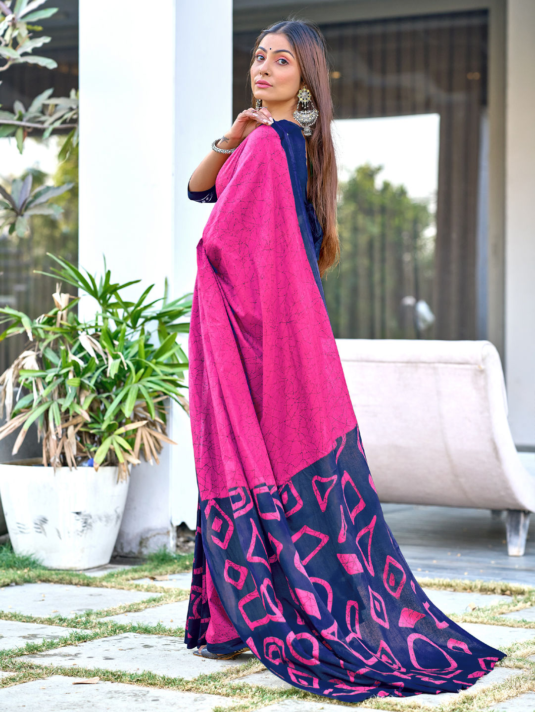 Pink and Majenta color Saree in Cotton fabric with Printed work