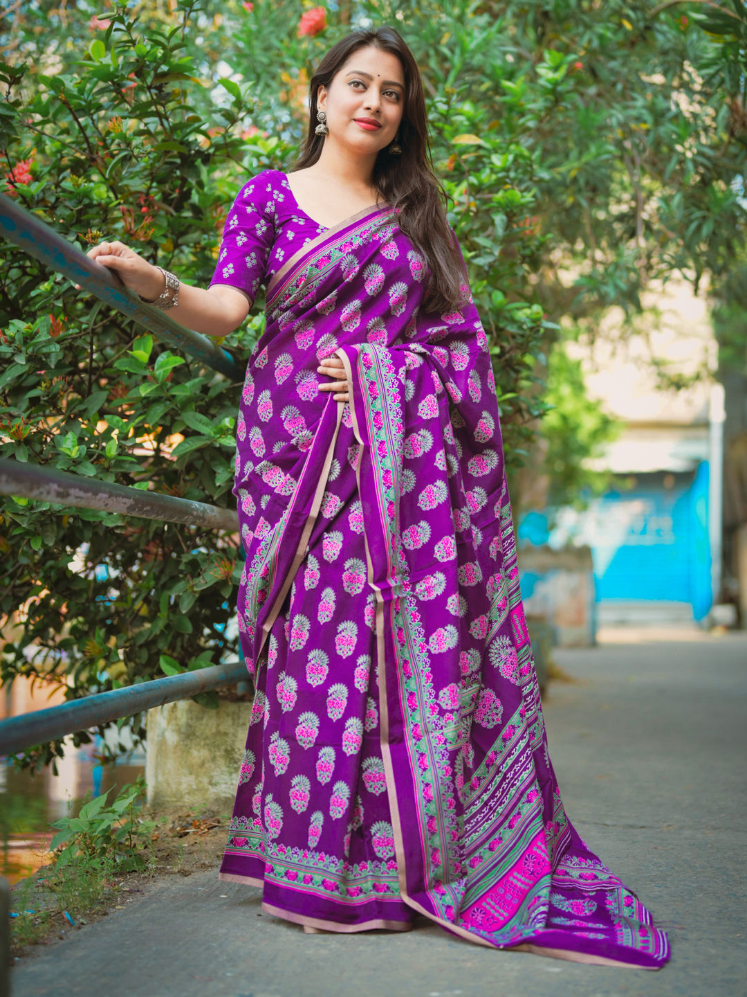 Pink and Majenta color Saree in Cotton fabric with Printed work