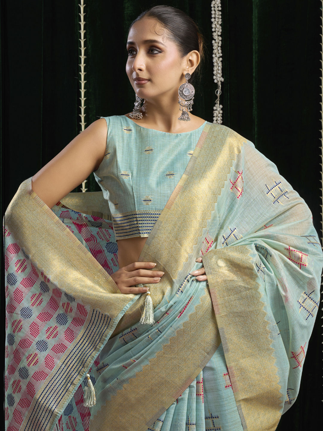 Cotton Traditional Saree in Purple and Violet with Thread work
