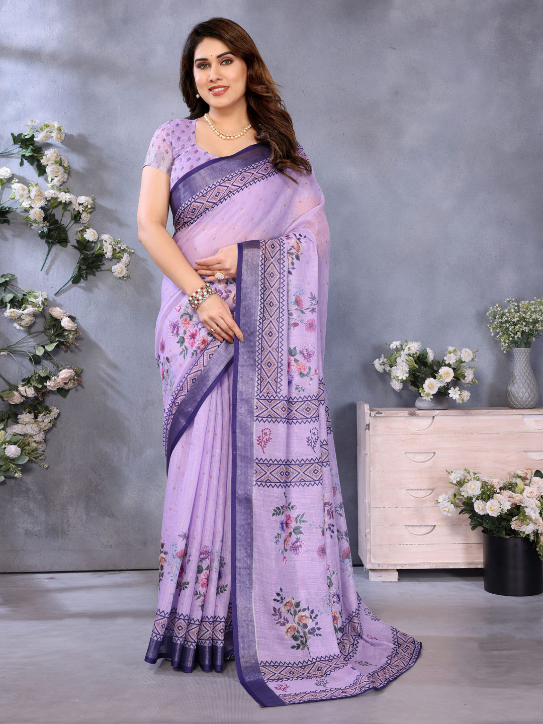 in Purple and Violet with Digital Print work