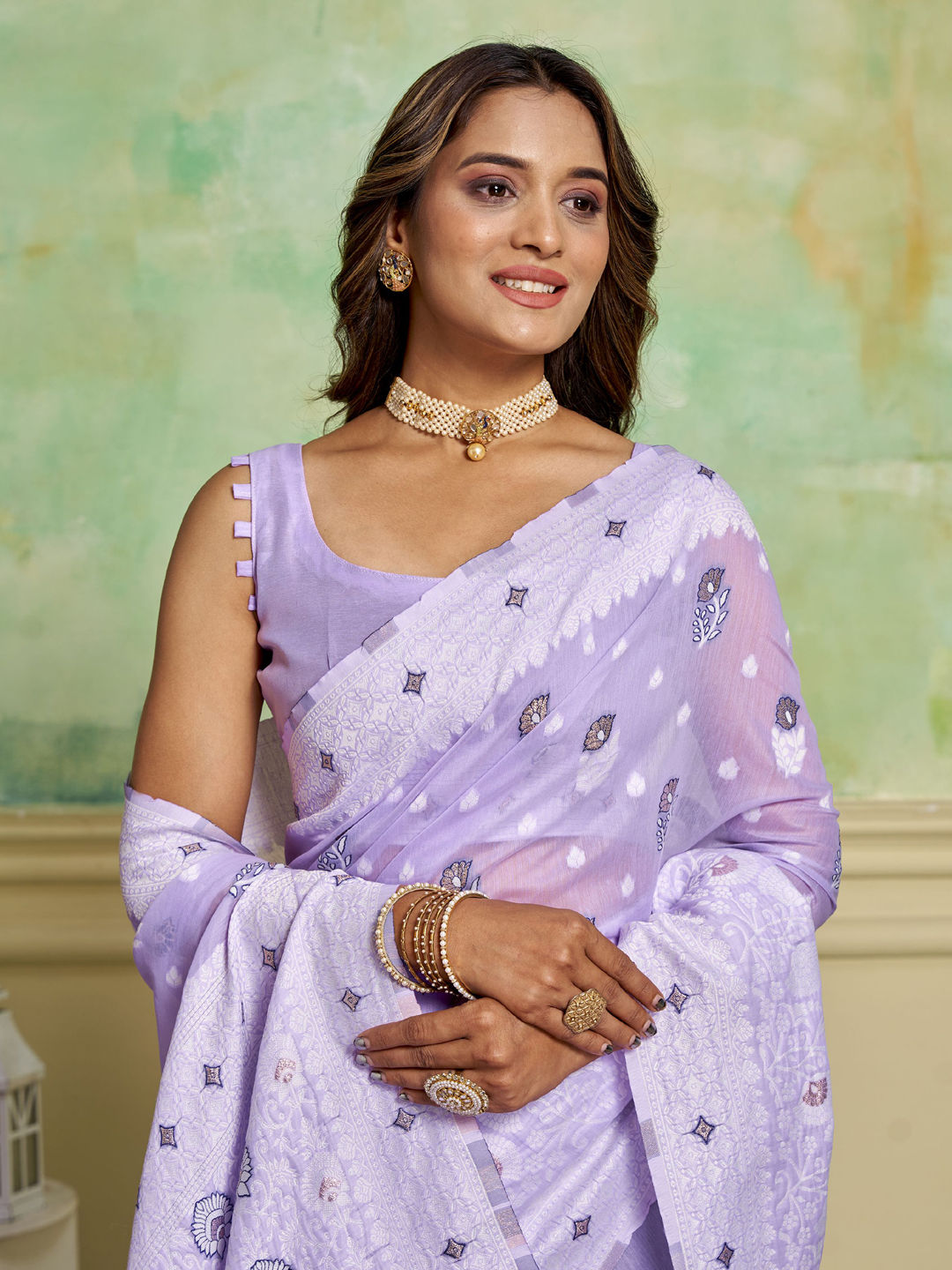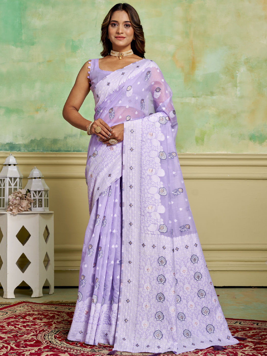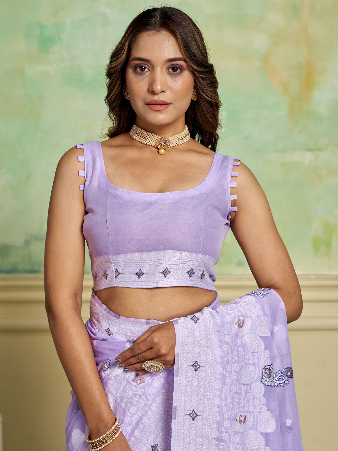 in Purple and Violet with Weaving work