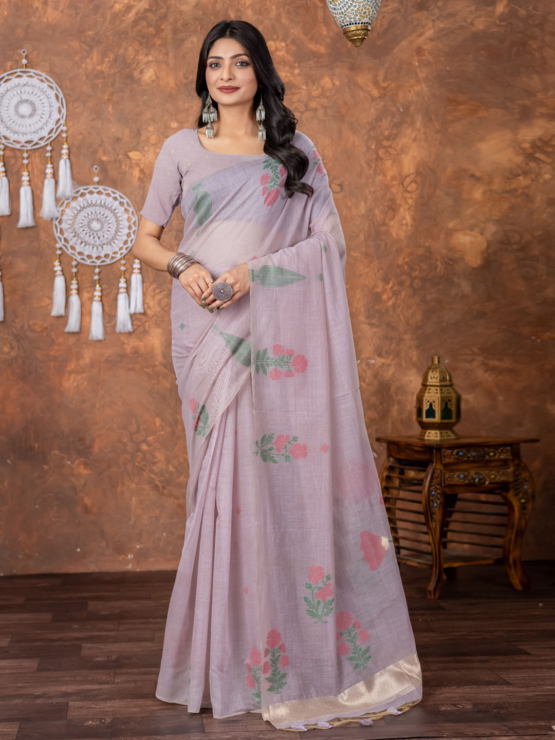 Purple and Violet color Saree in Cotton fabric with Weaving work