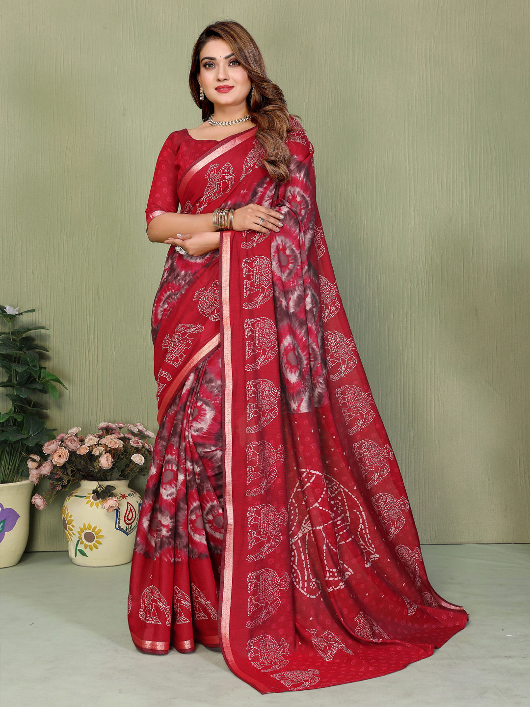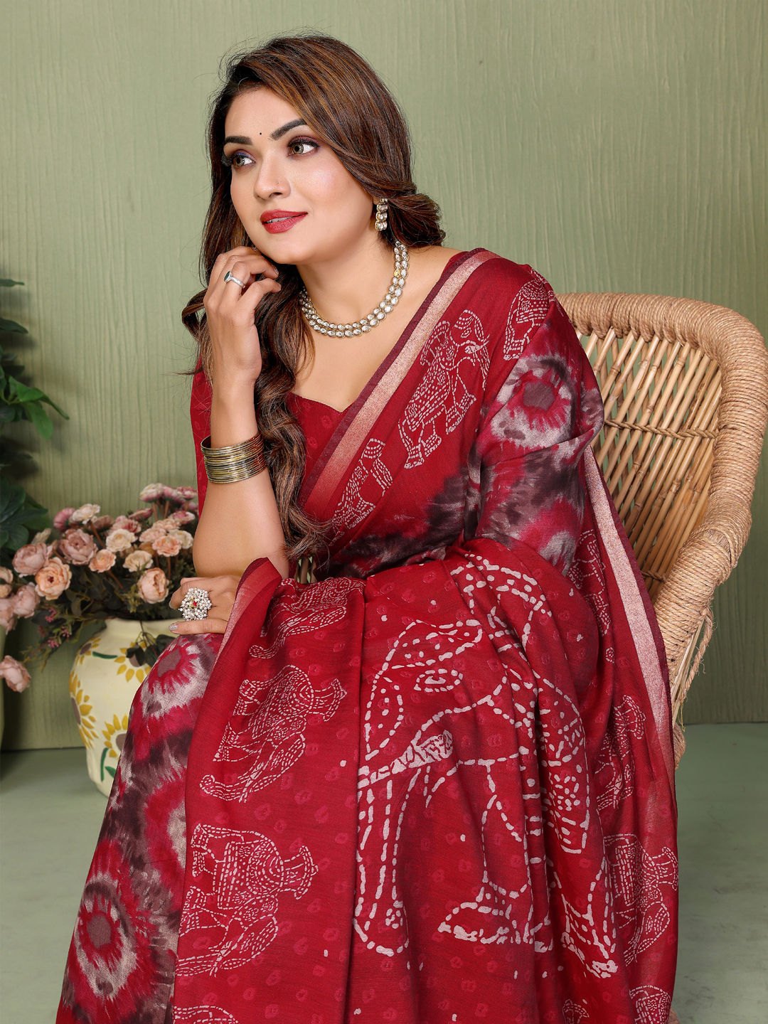 in Red and Maroon with Printed work
