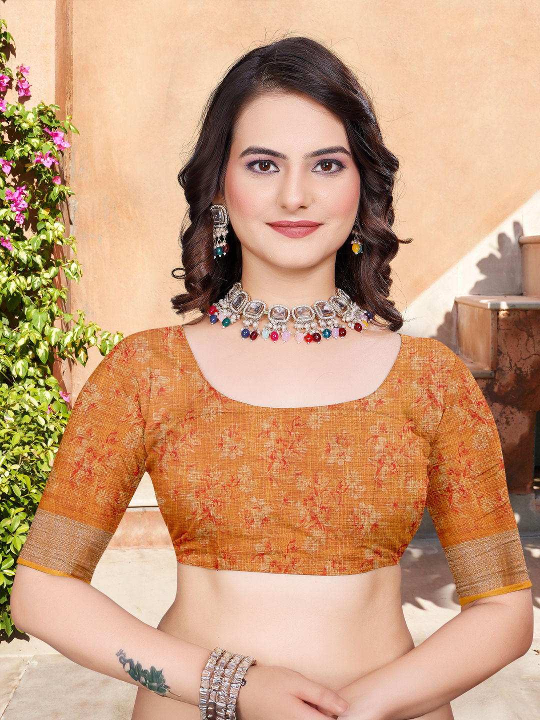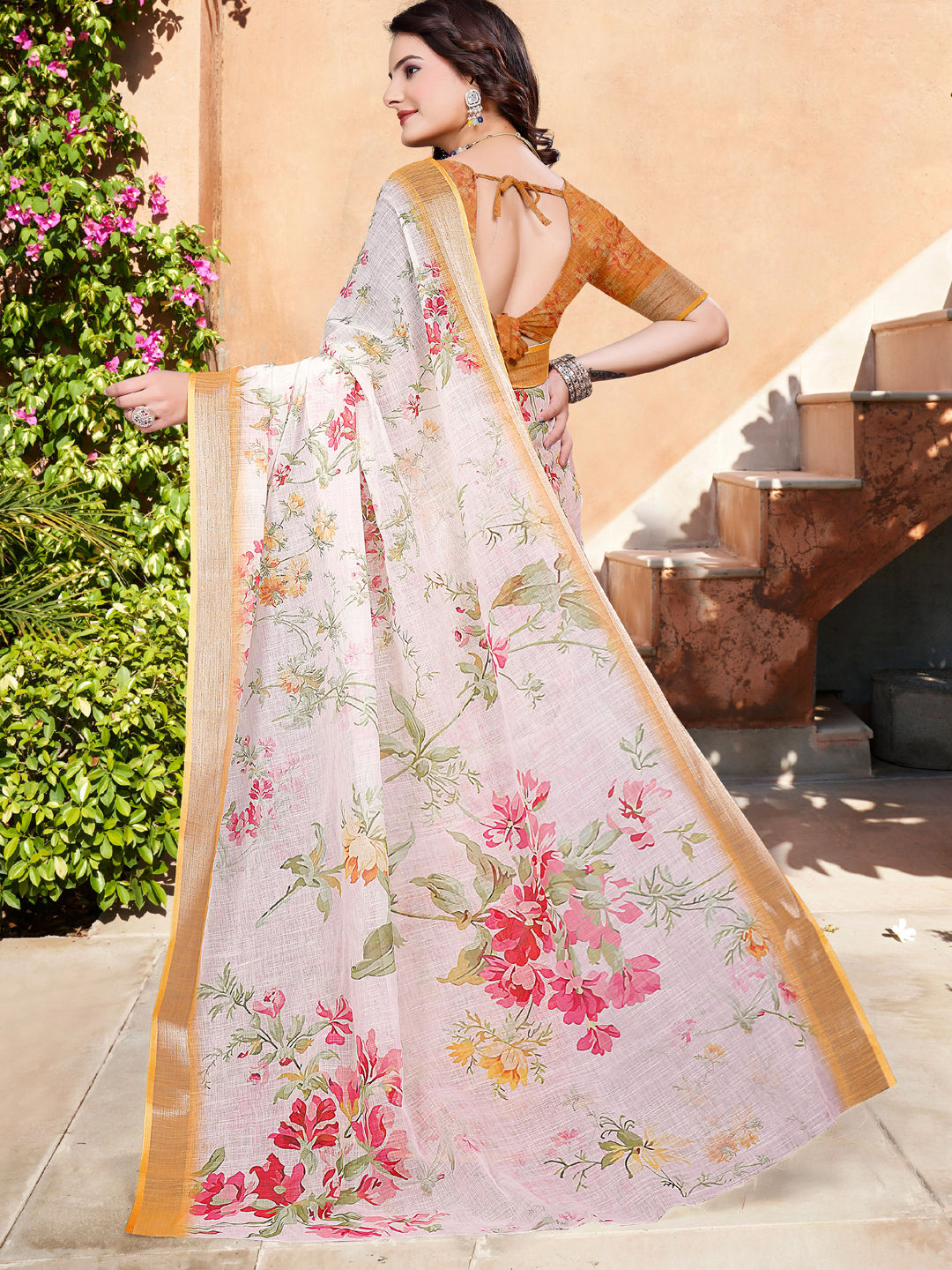 White and Off White color Saree in Cotton, Linen fabric with Digital Print, Floral work