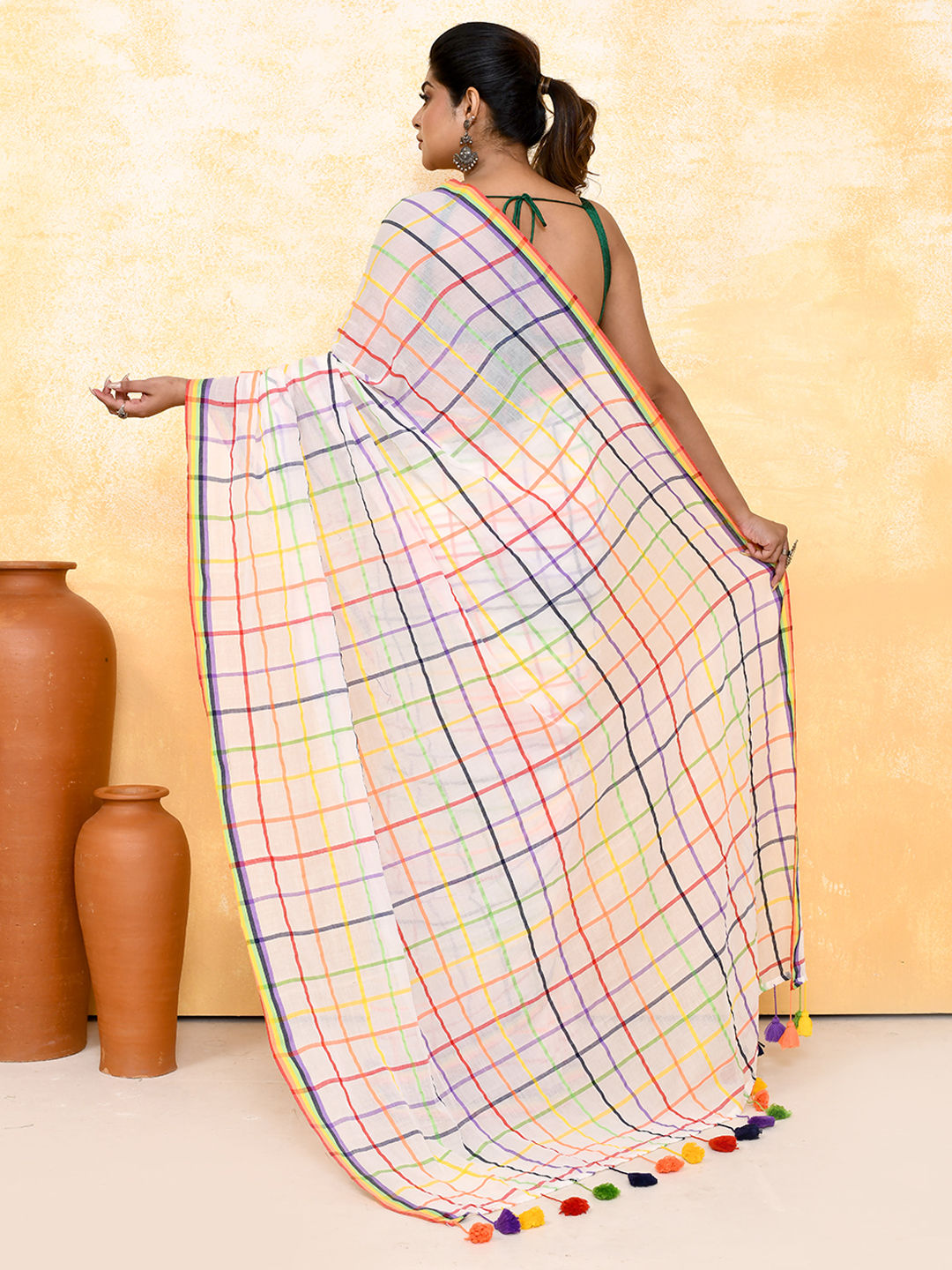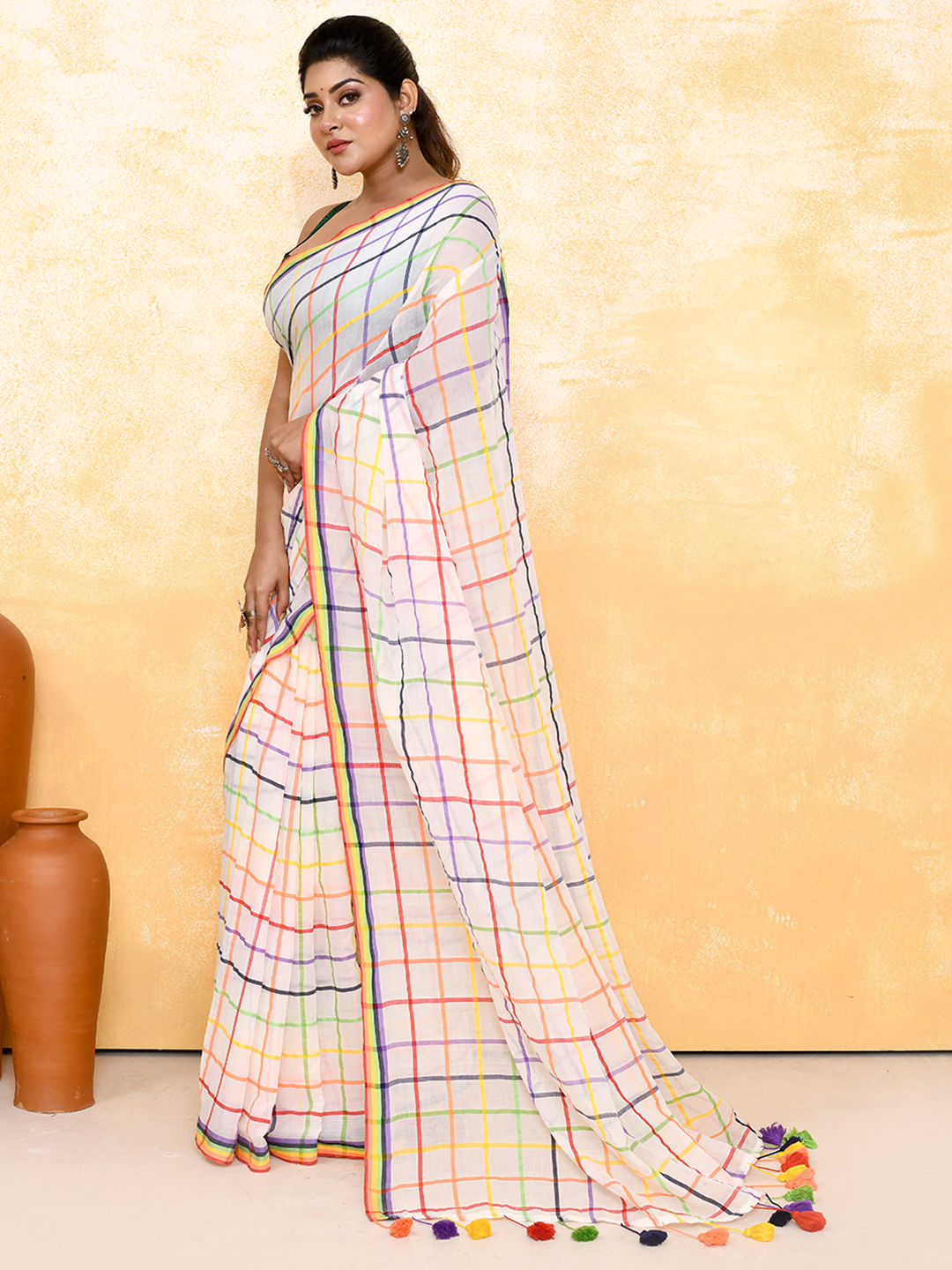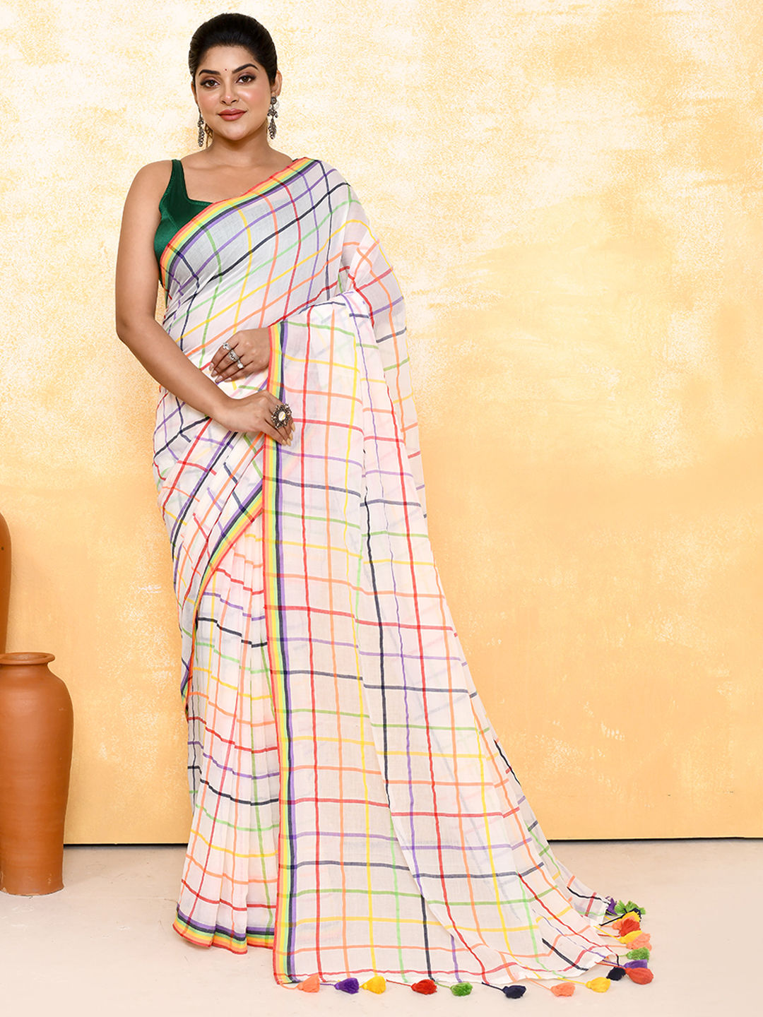 White and Off White color Saree in Cotton, Malmal fabric with Weaving work