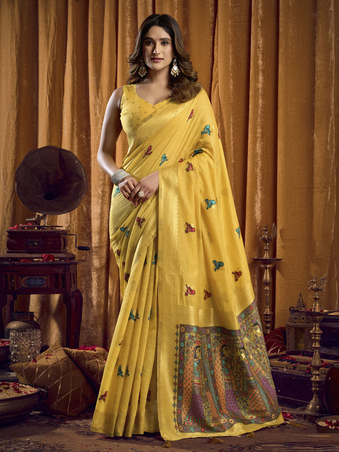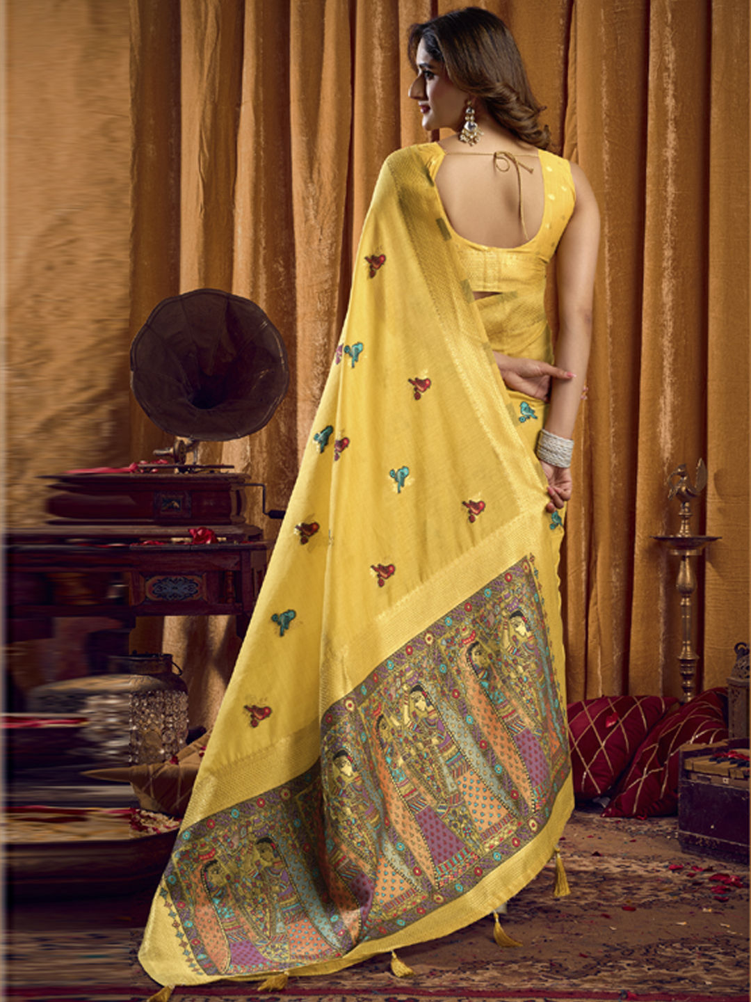 in Yellow with Weaving work
