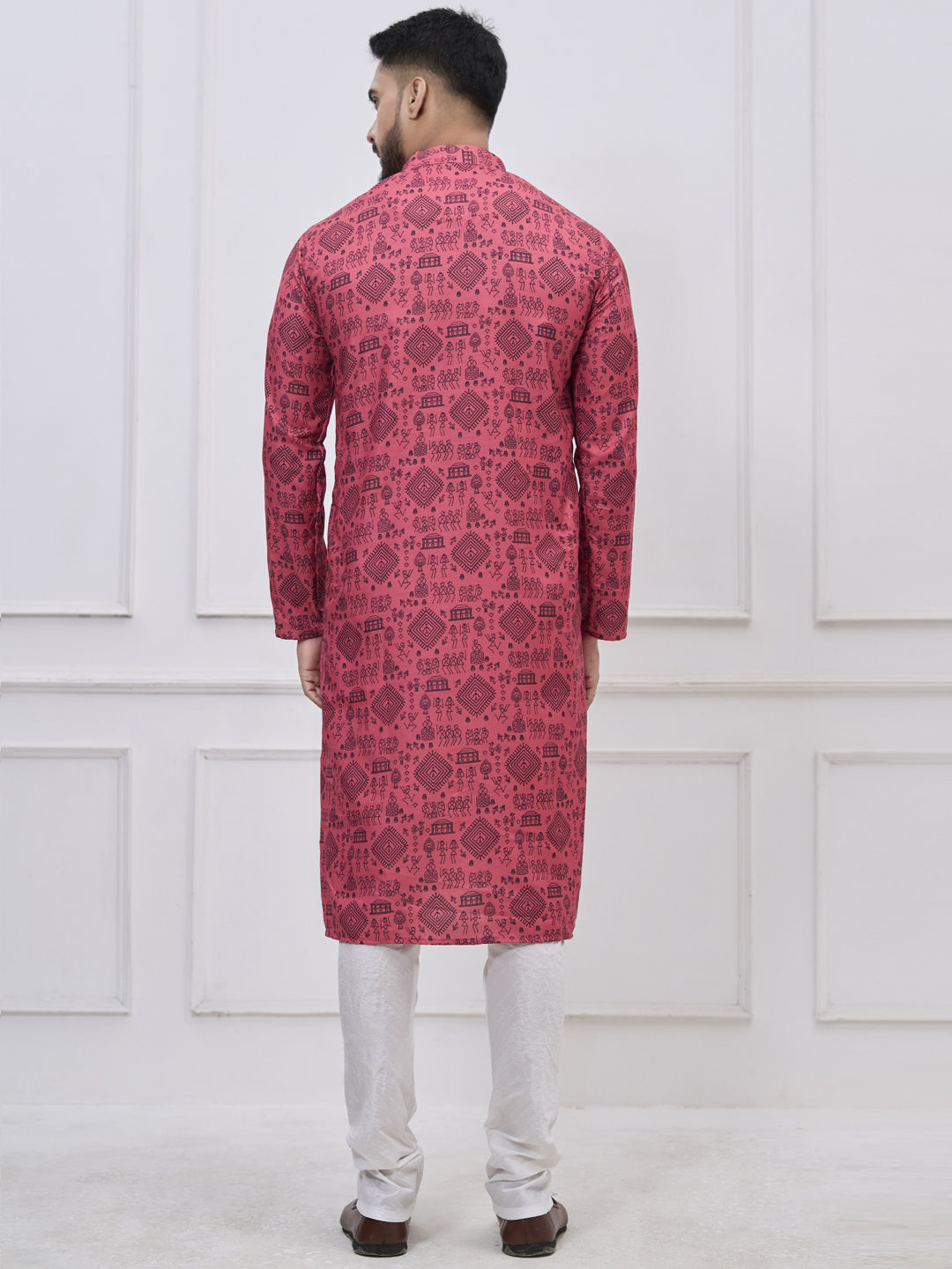 Cotton Traditional Kurta Pyjamas in Multicolor with Printed work