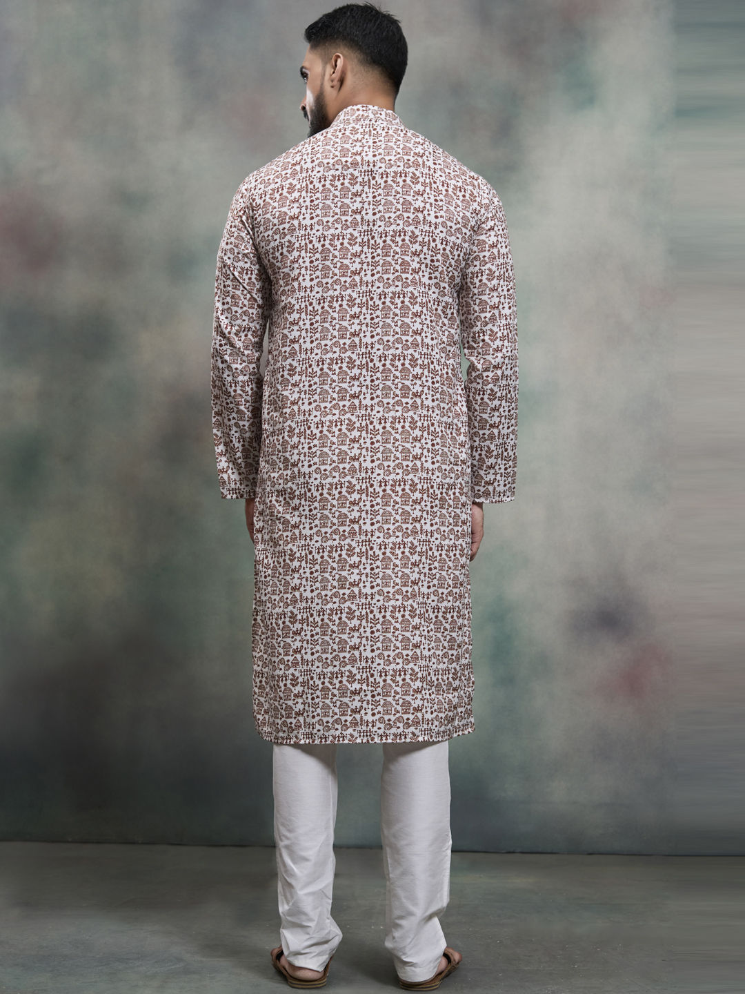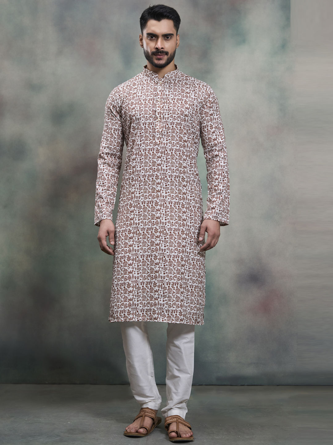 Cotton Traditional Kurta Pyjamas in Multicolor with Printed work