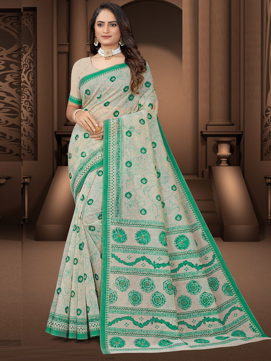 Cotton Traditional Saree in Beige and Brown with Printed work