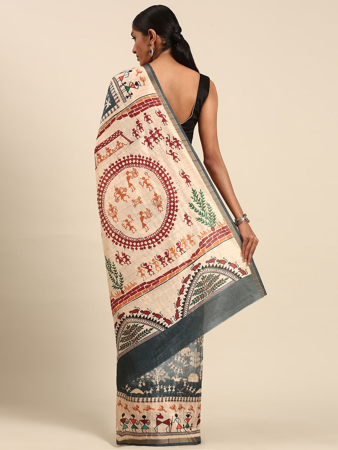 Beige and Brown, Black and Grey color Saree in Cotton fabric with Printed work