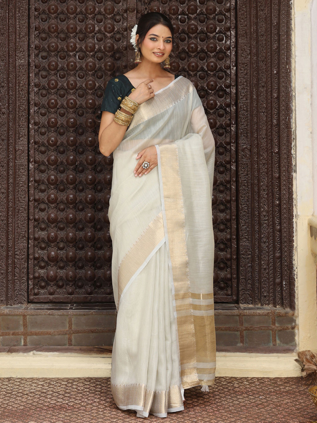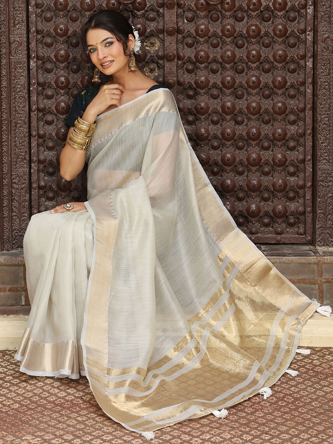 Black and Grey color Saree in Cotton fabric with Weaving work