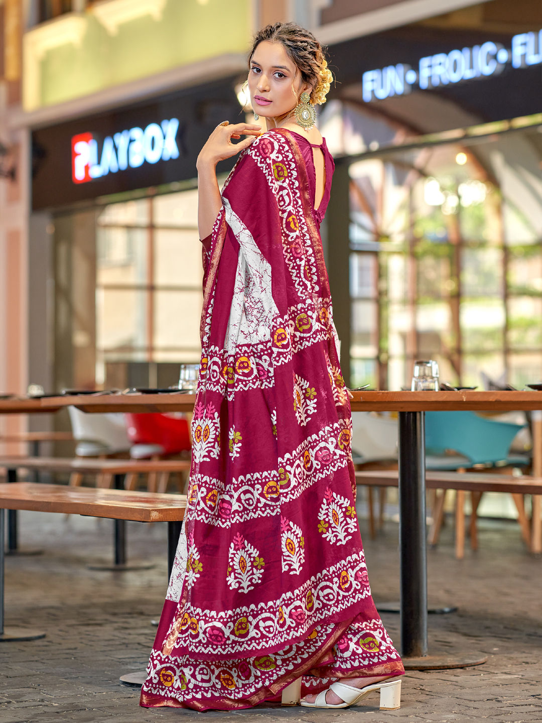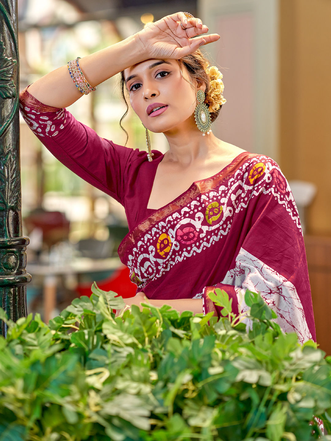 Pink and Majenta color Saree in Cotton fabric with Printed work