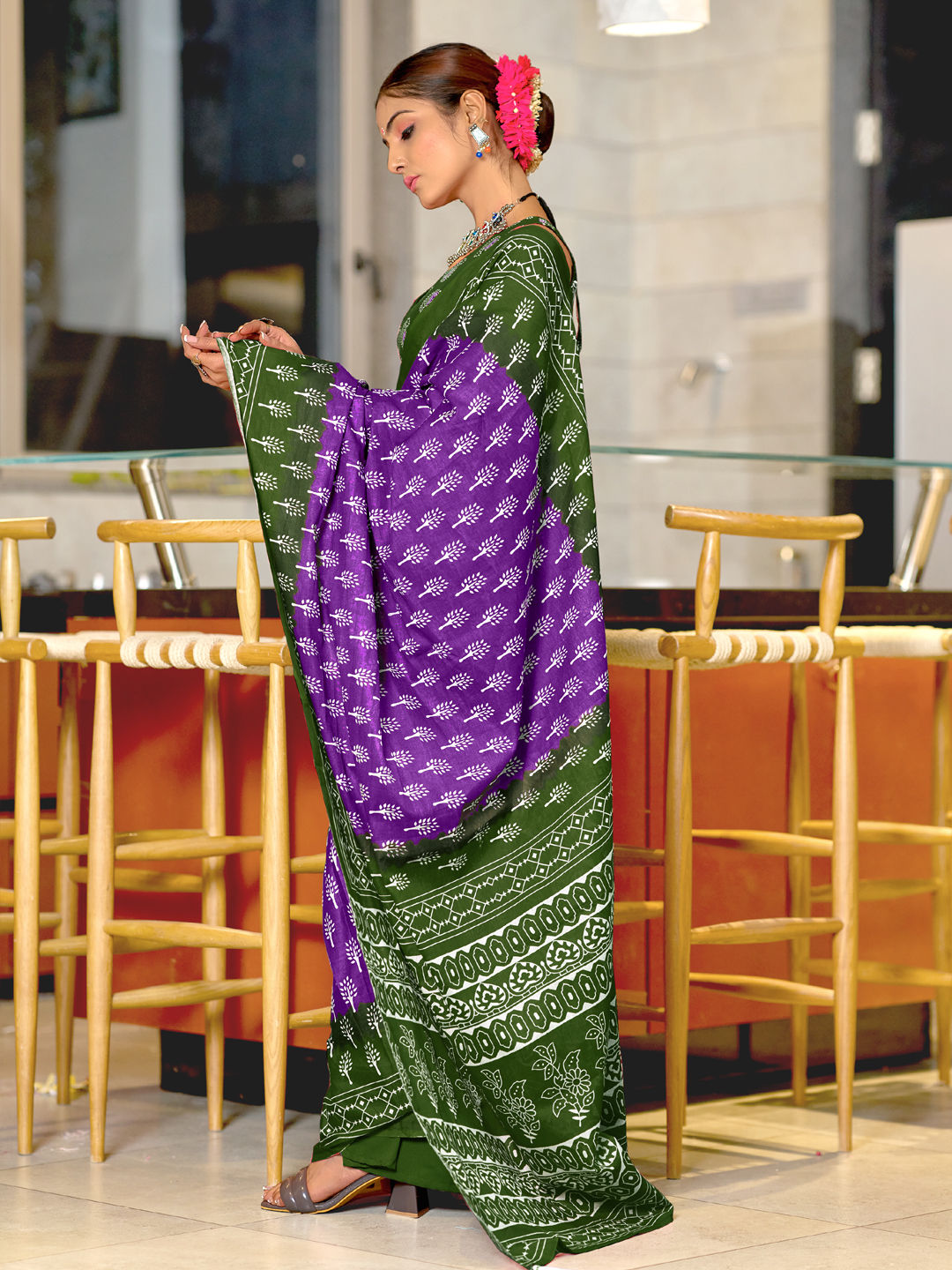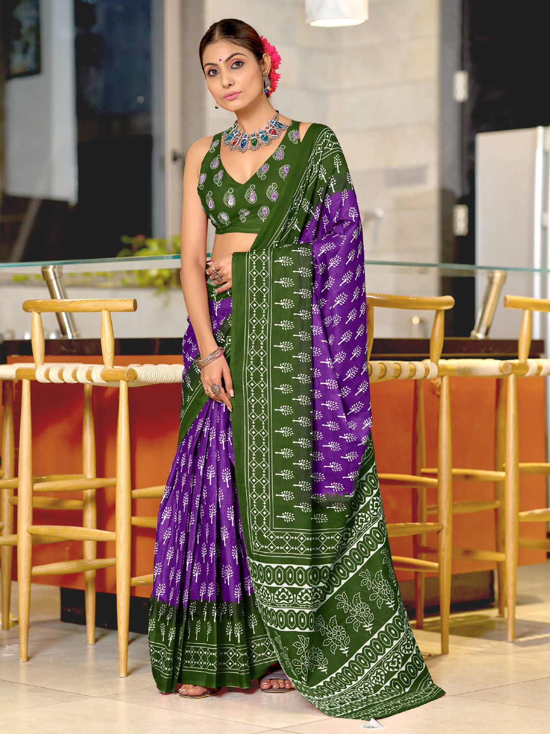 Purple and Violet color Saree in Cotton fabric with Printed work