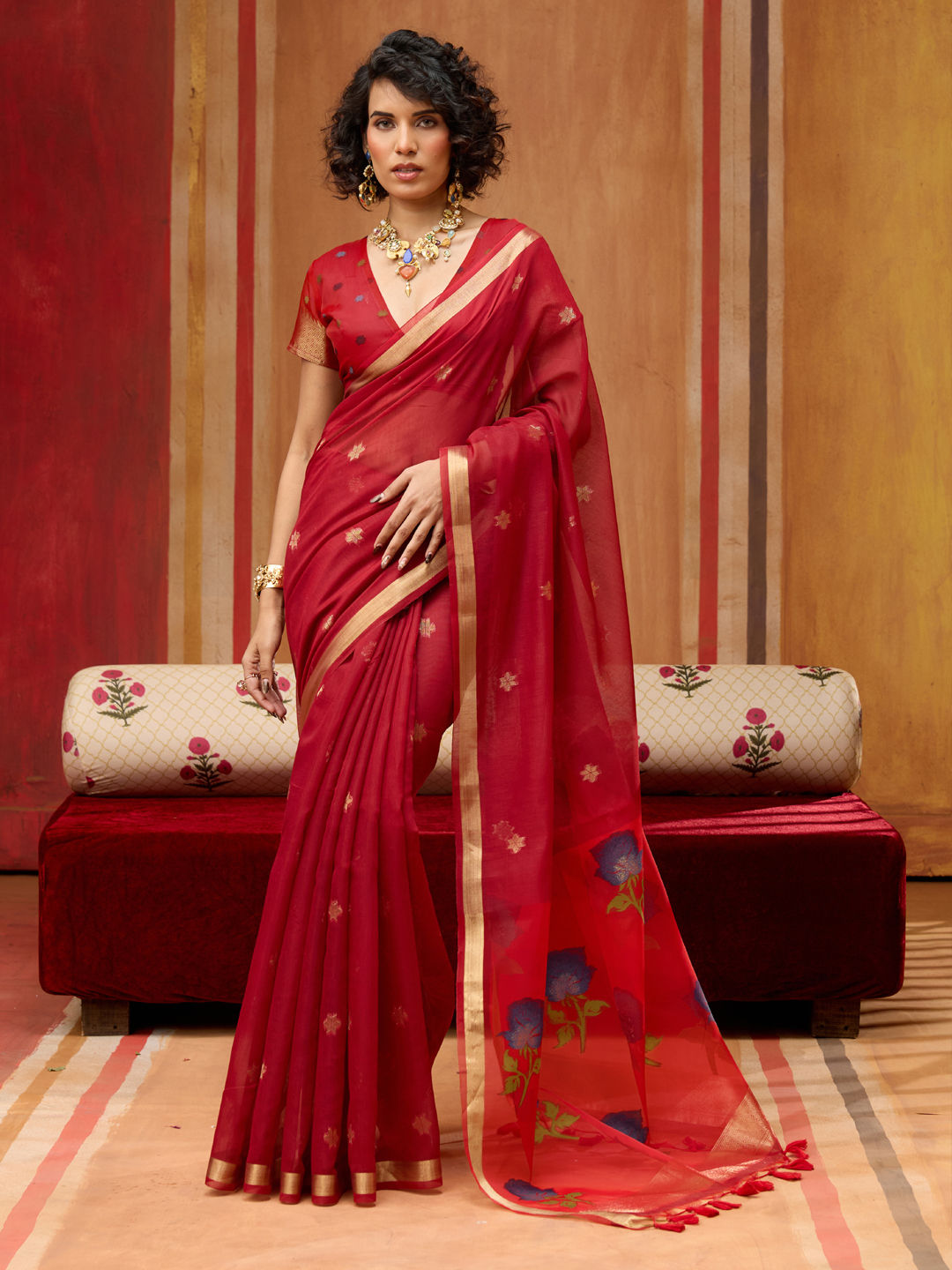 in Red and Maroon with Weaving work