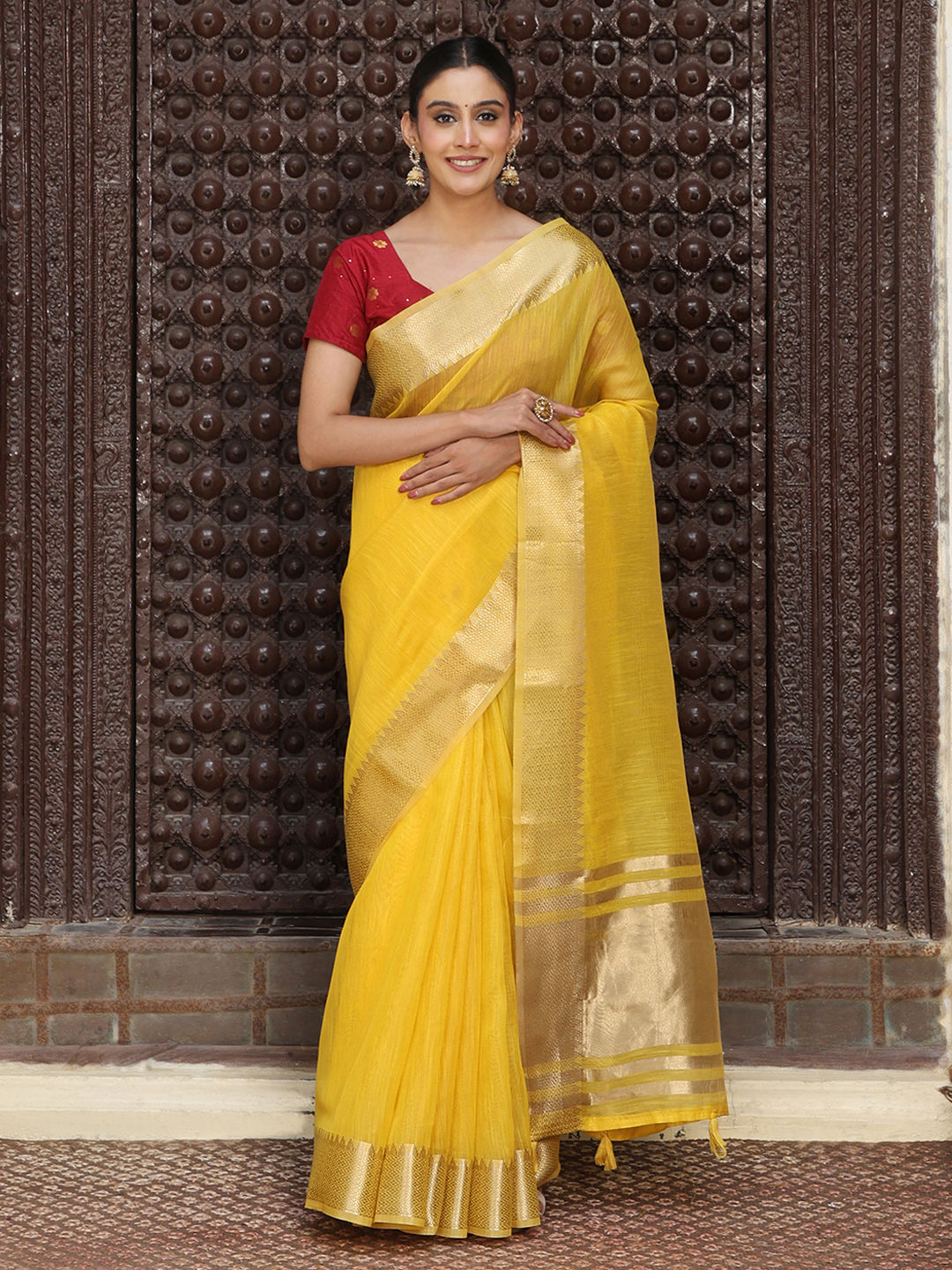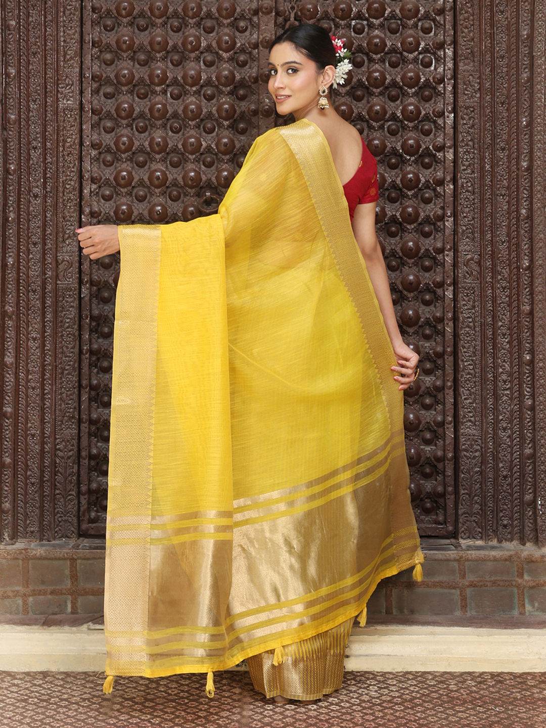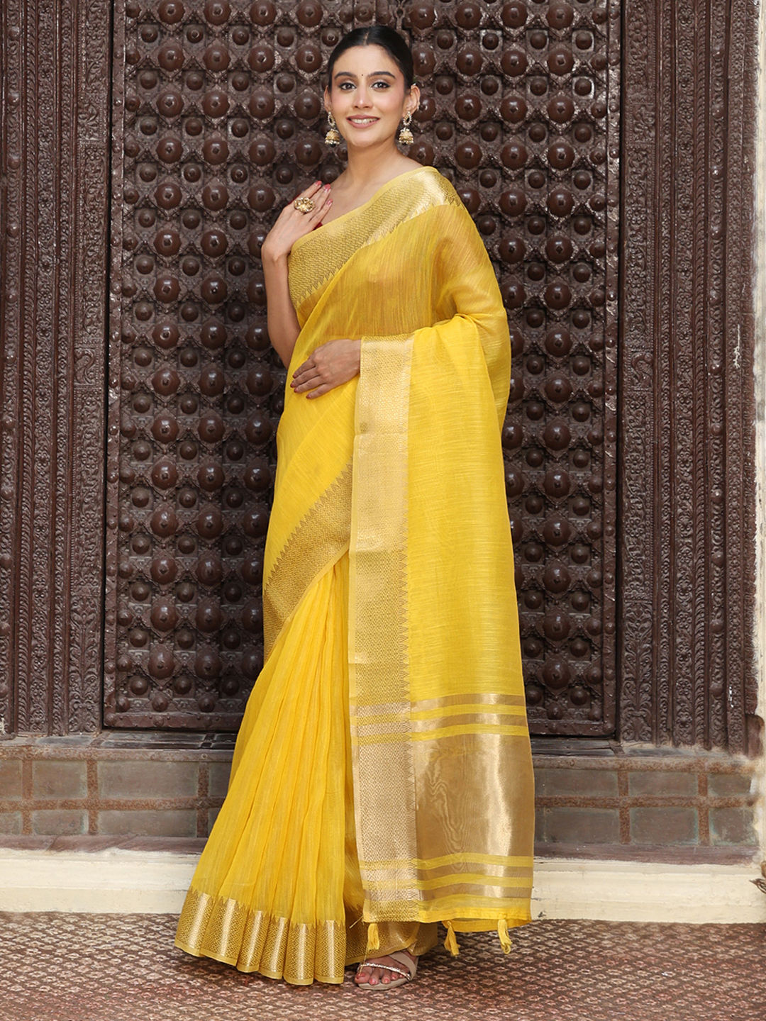 Yellow color Saree in Cotton fabric with Weaving work