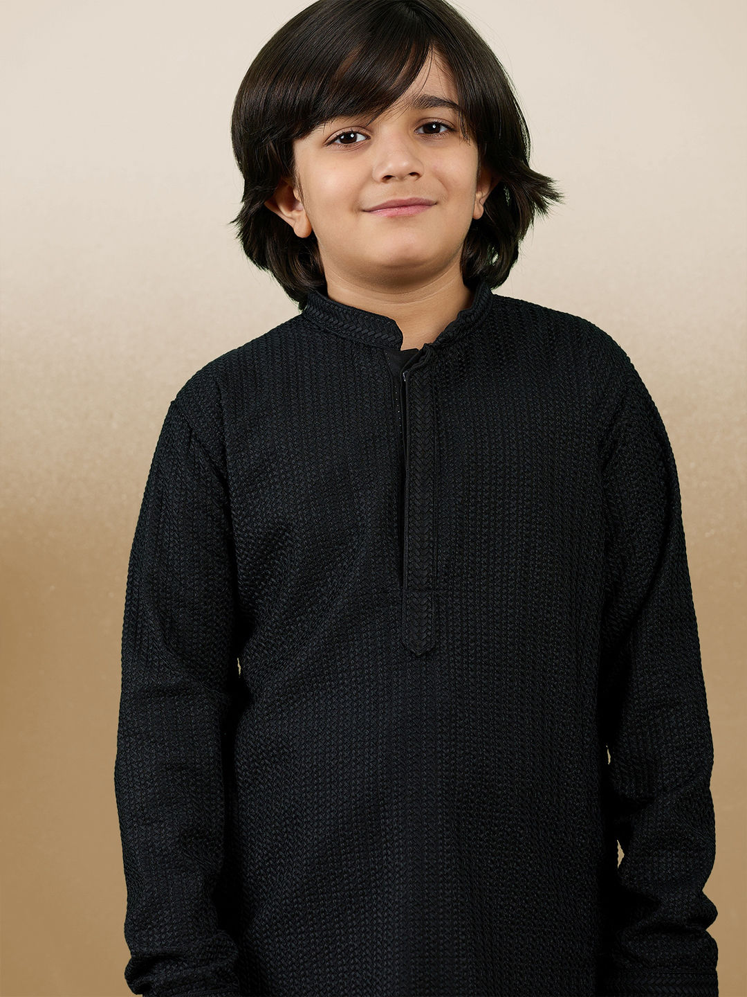 Black and Grey color Boys Kurta Pyjama in Cotton fabric with Embroidered work