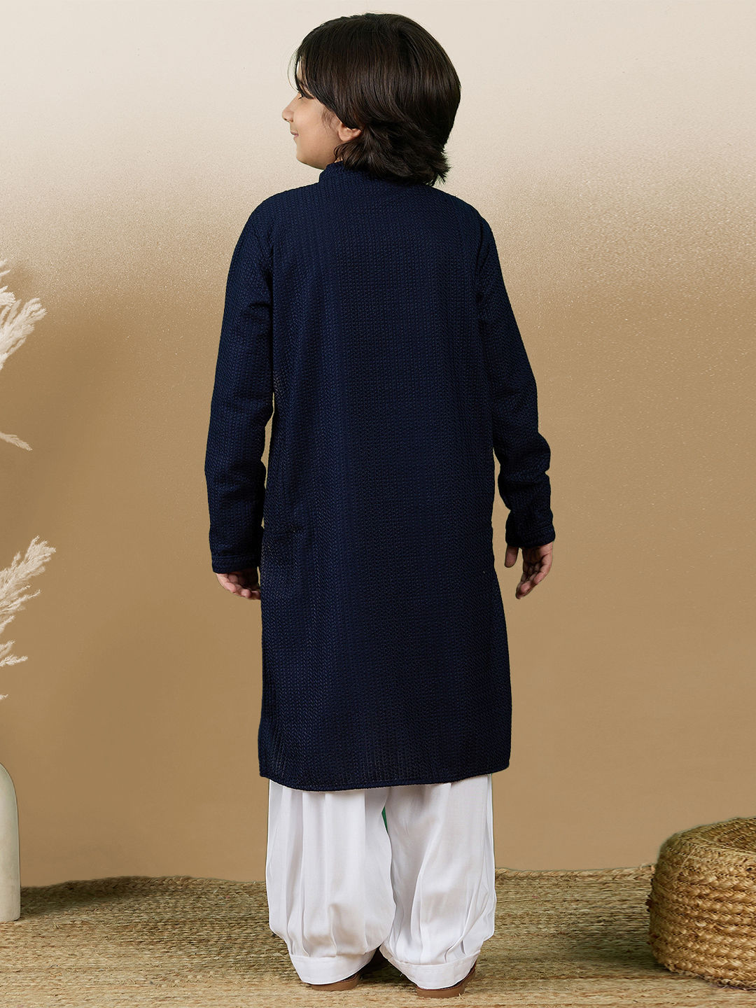 Blue color Boys Kurta Pyjama in Cotton fabric with Embroidered work