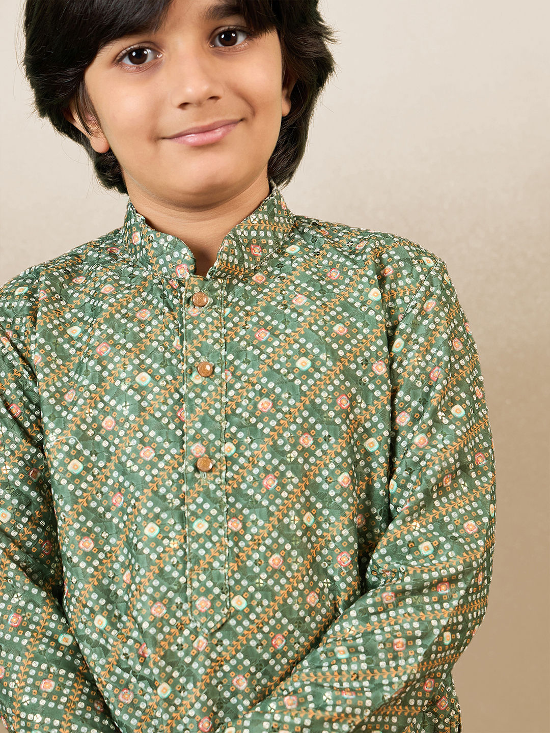 Green color Boys Kurta Pyjama in Cotton fabric with Printed, Zari work