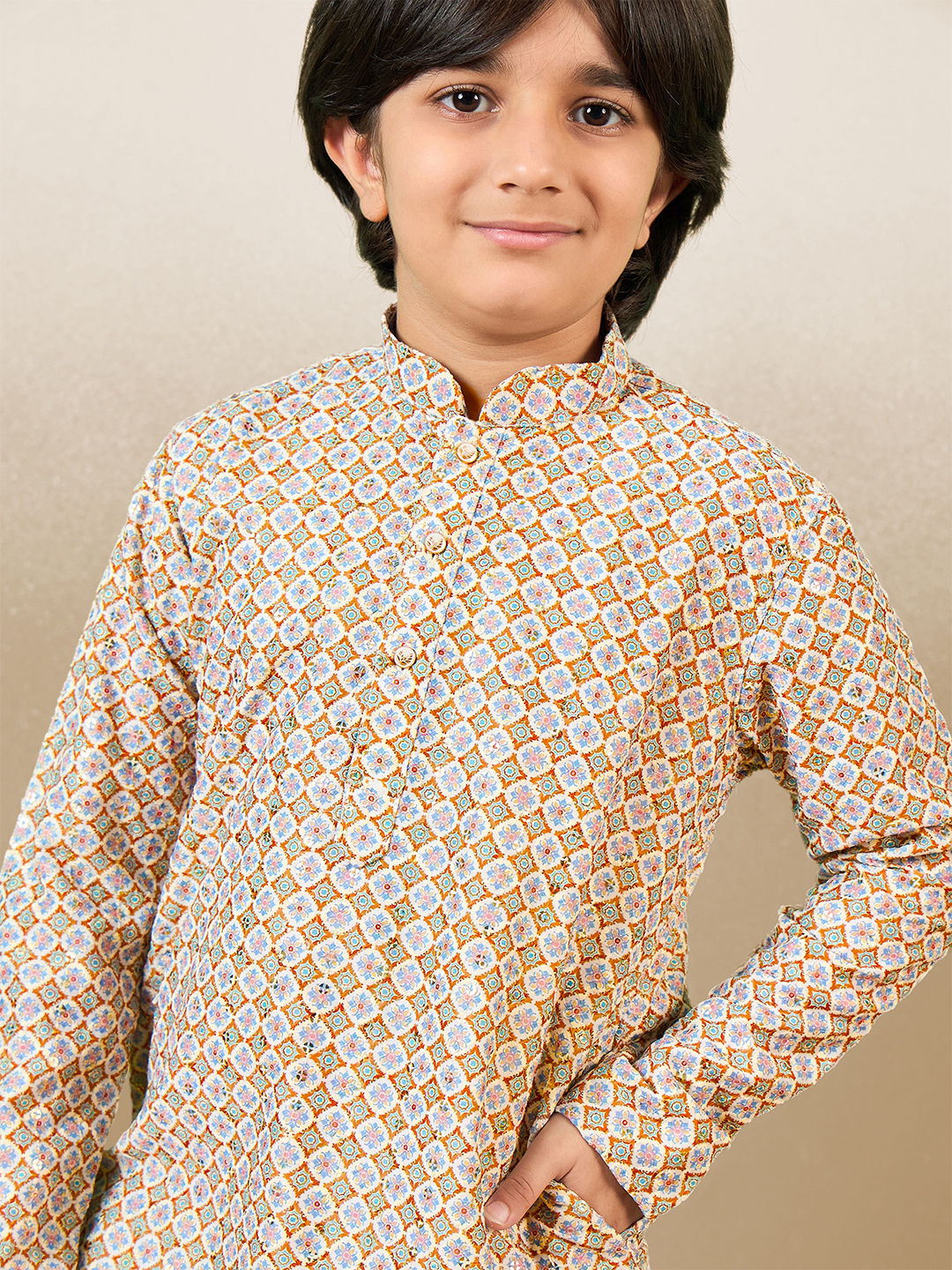 Cotton Festive Boys Kurta Pyjama in Multicolor with Printed work